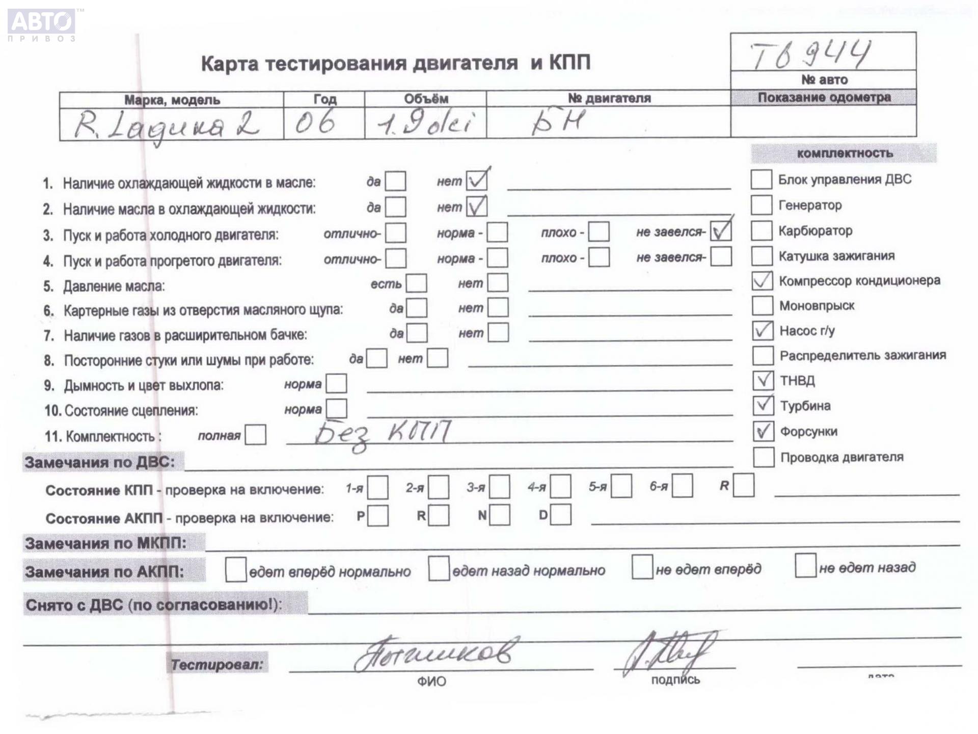 | Автомобиль / VIN: | T6944 VF1KG4VB637715228 |