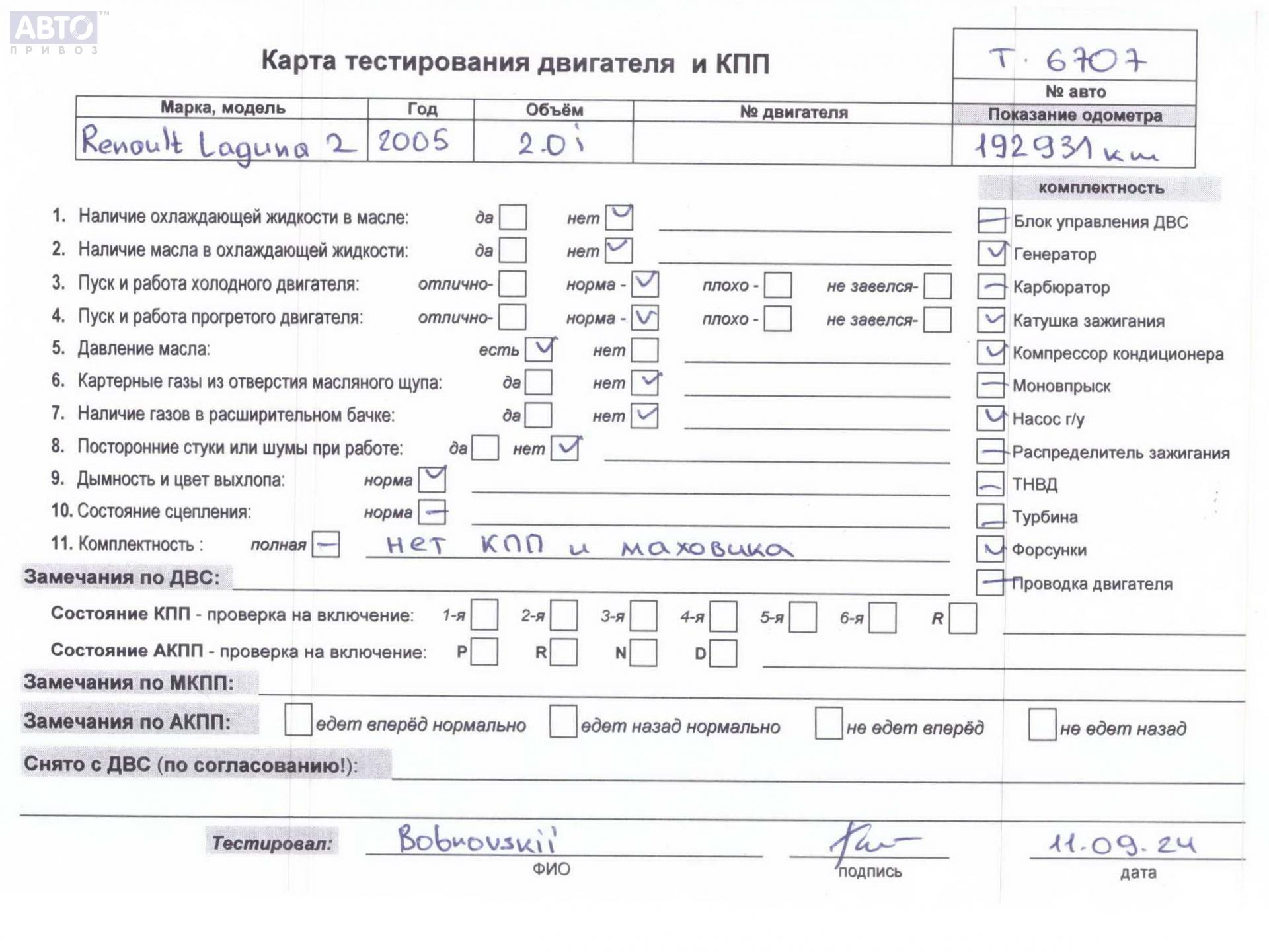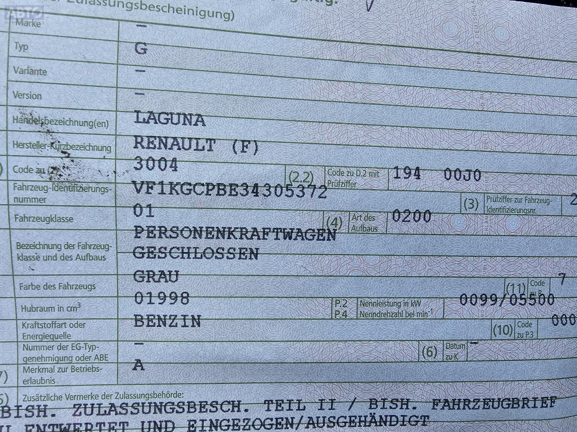 | Марка / Модель / Год: | Renault Laguna II (2001-2007) 2005 |
