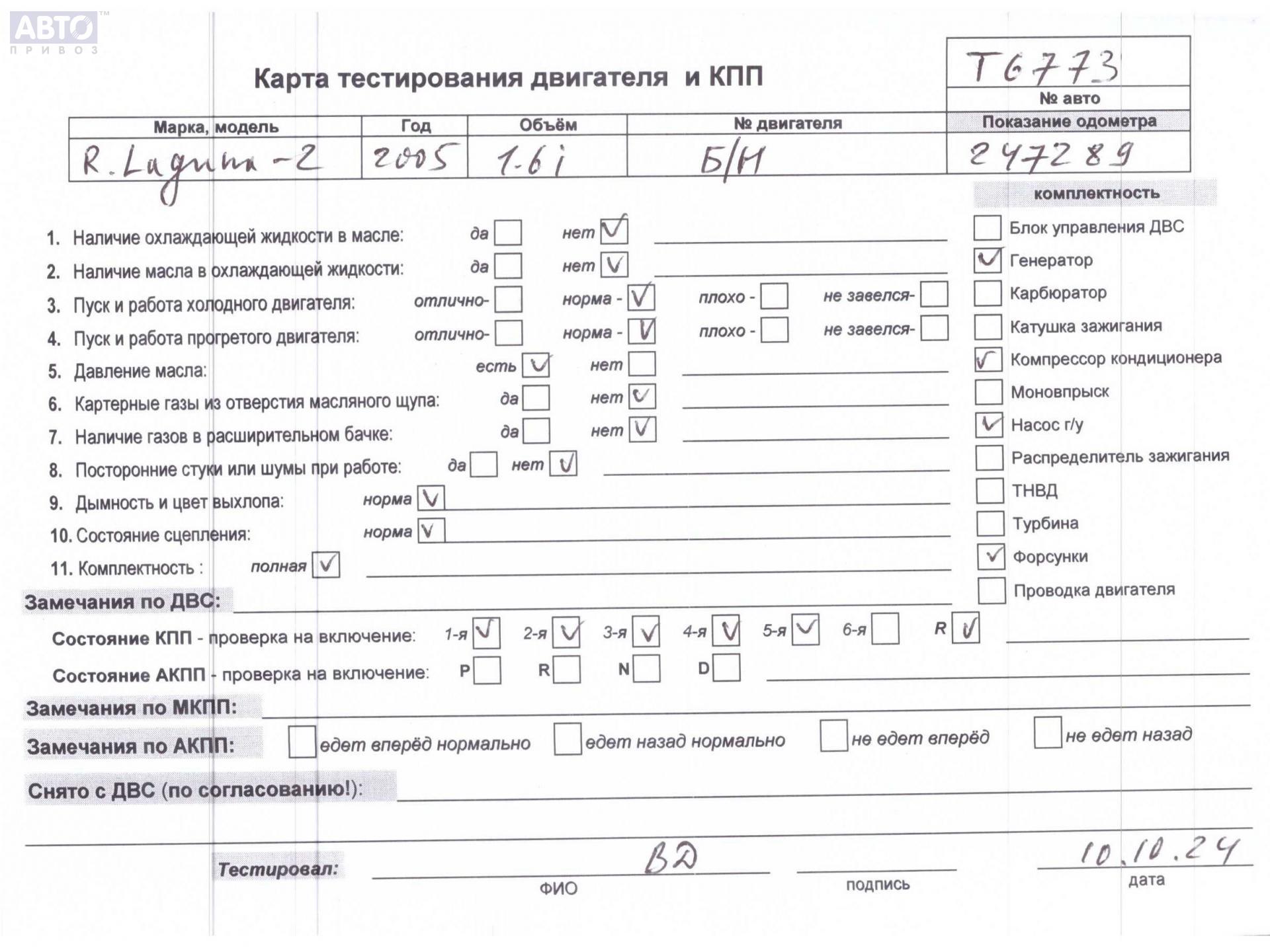 | Марка / Модель / Год: | Renault Laguna II (2001-2007) 2005 |