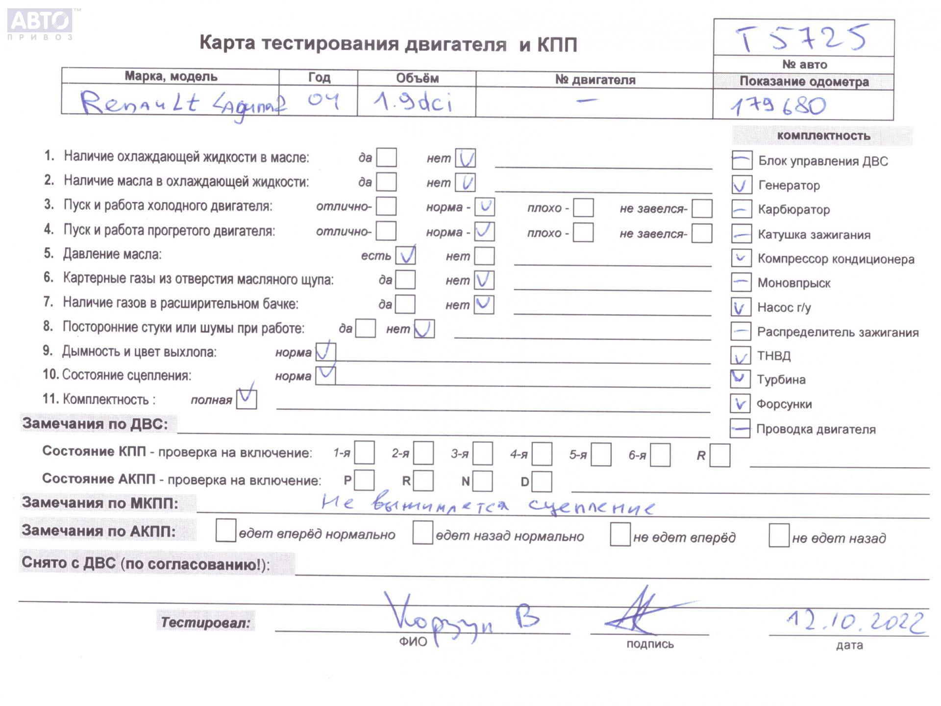 | Автомобиль / VIN: | T5725 VF1KGRG0632838597 |