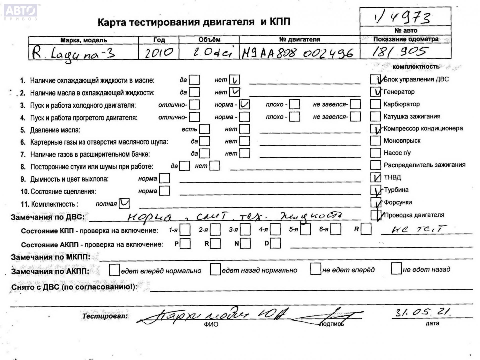 | Марка / Модель / Год: | Renault Laguna III (2008-2015) 2010 |