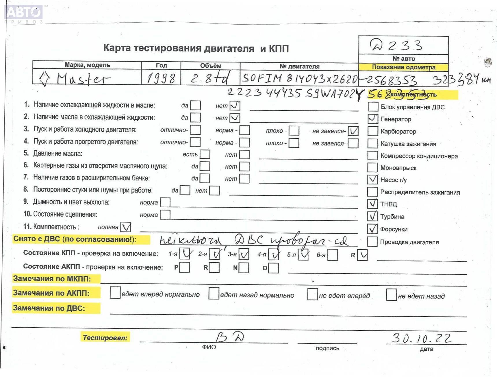 | Марка / Модель / Год: | Renault Master (1998-2010) 1998 |