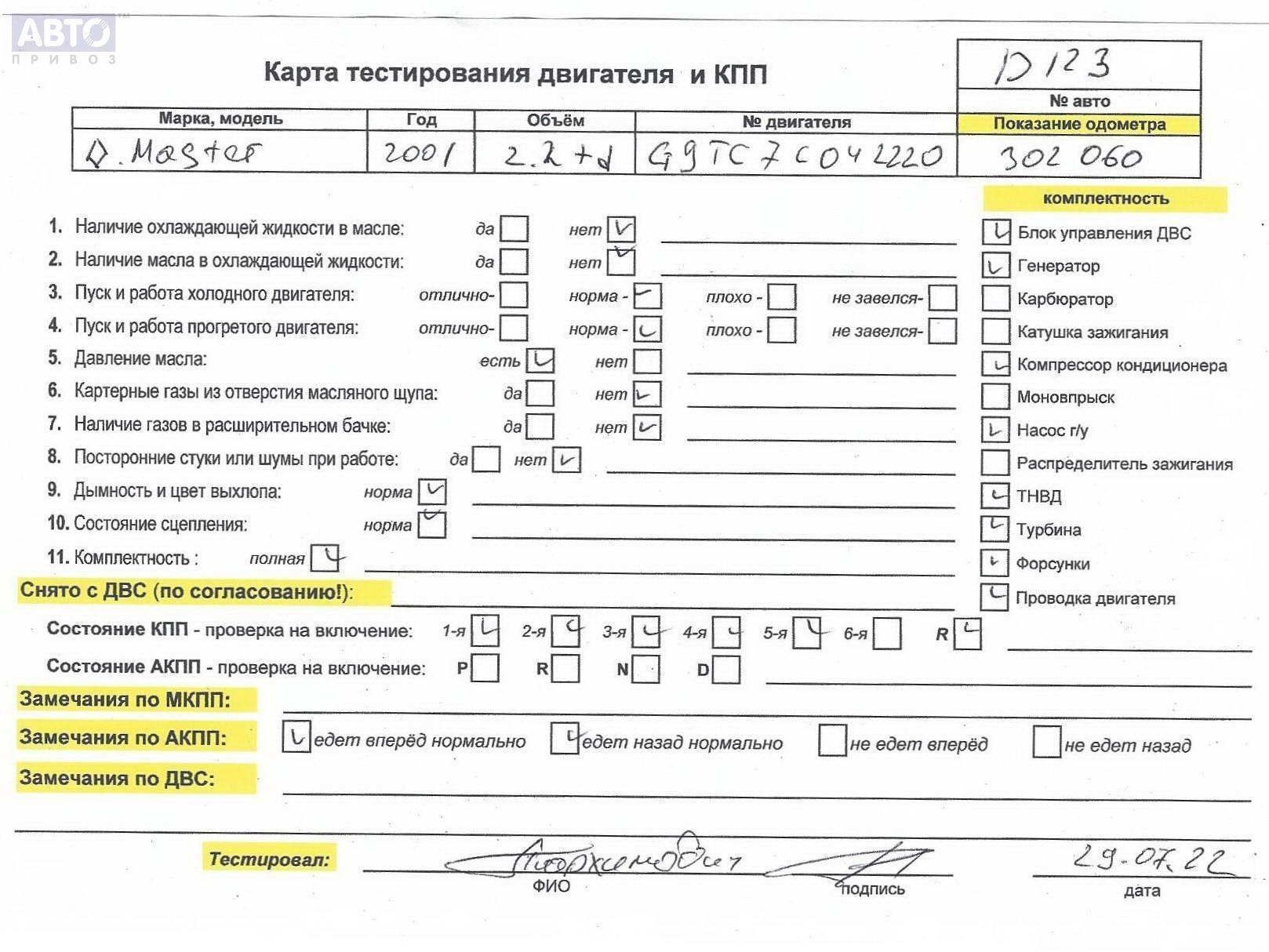 | Марка / Модель / Год: | Renault Master (1998-2010) 2001 |