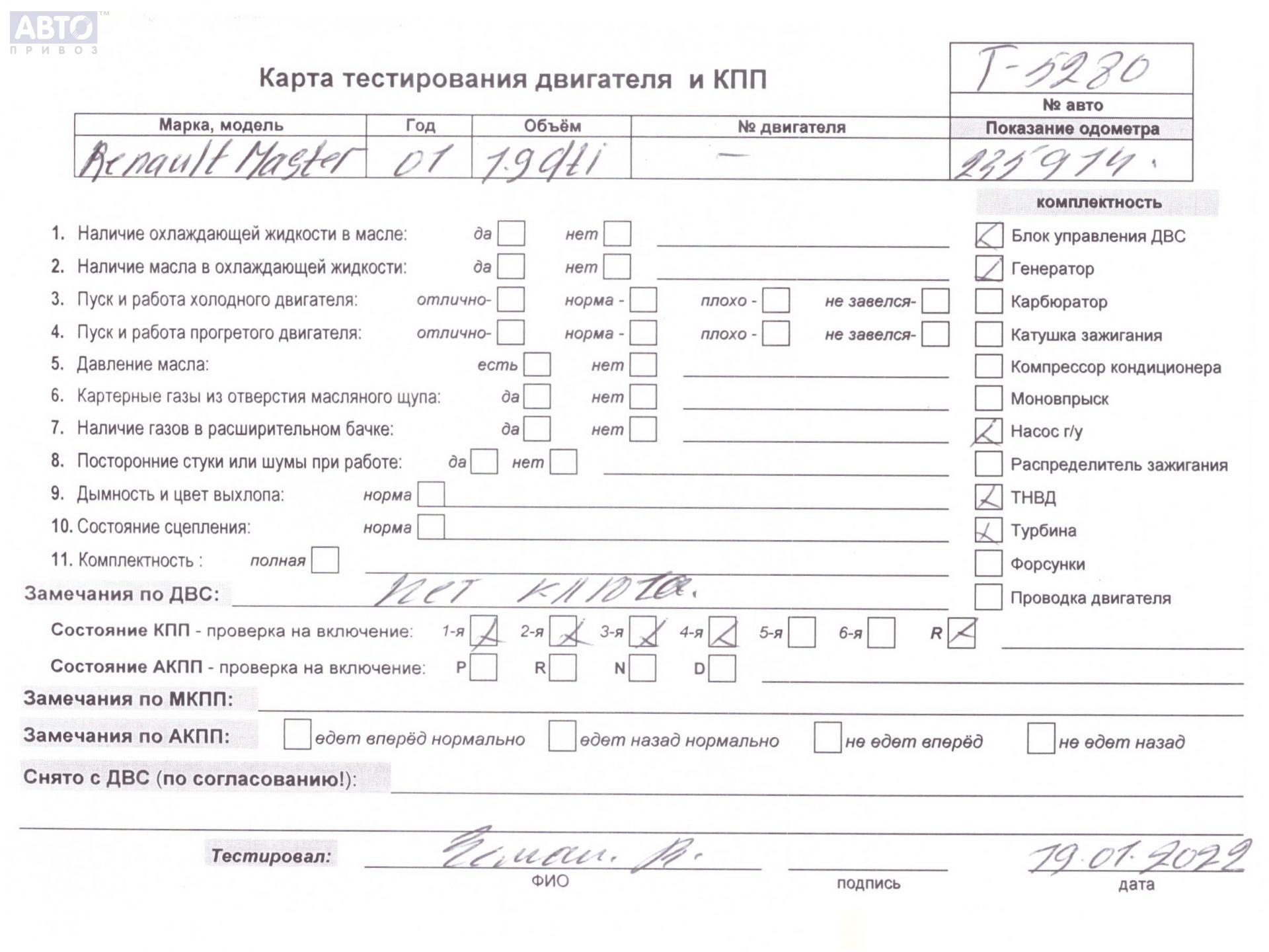 | Марка / Модель / Год: | Renault Master (1998-2010) 2001 |