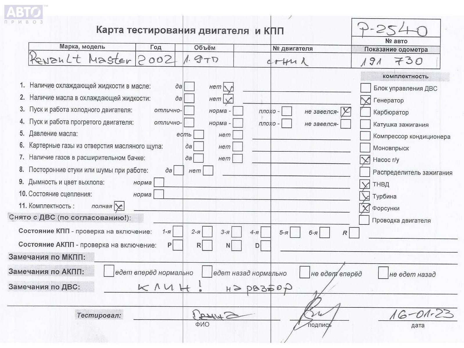| Автомобиль / VIN: | P2540 VF1JDAPD526912380 |