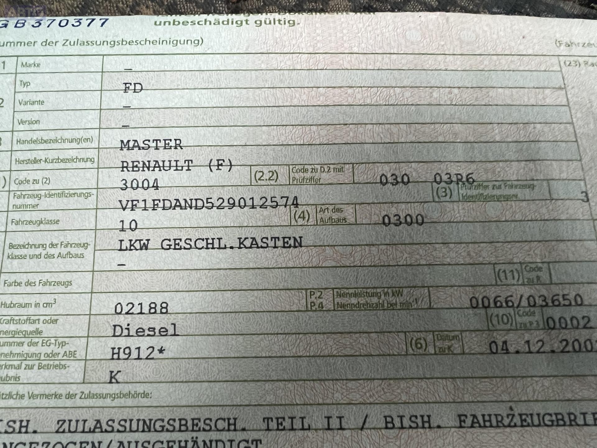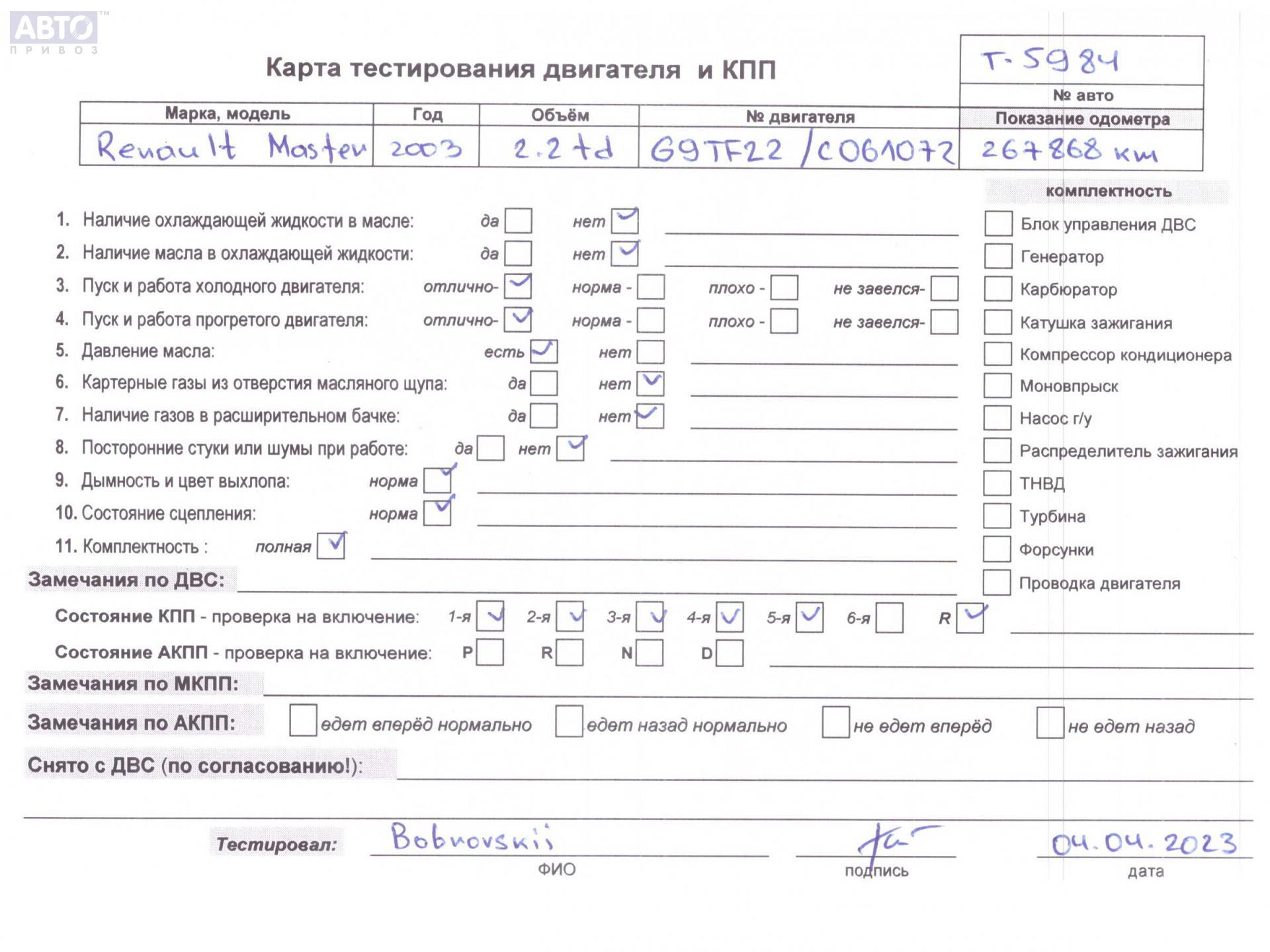 | Марка / Модель / Год: | Renault Master (1998-2010) 2003 |