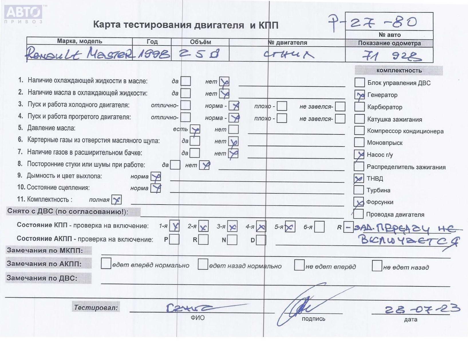 | Марка / Модель / Год: | Renault Master (1998-2010) 1998 |