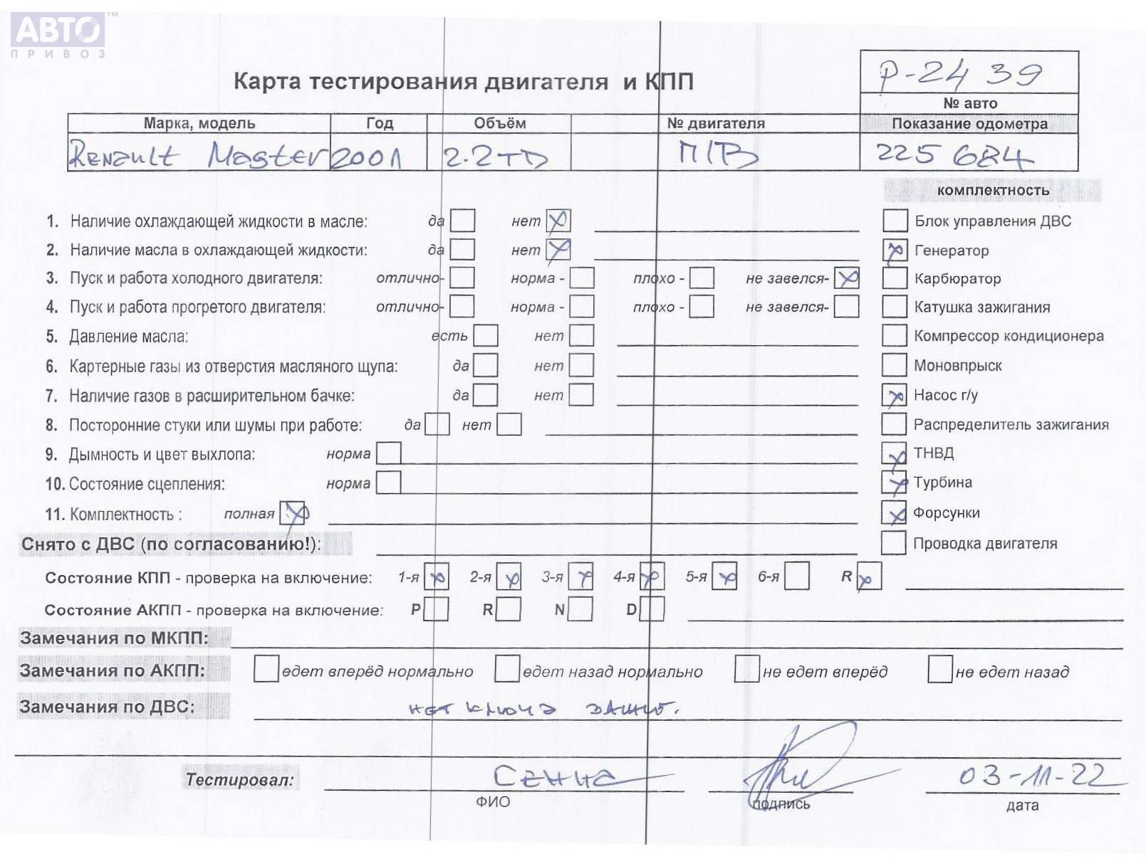 | Марка / Модель / Год: | Renault Master (1998-2010) 2001 |