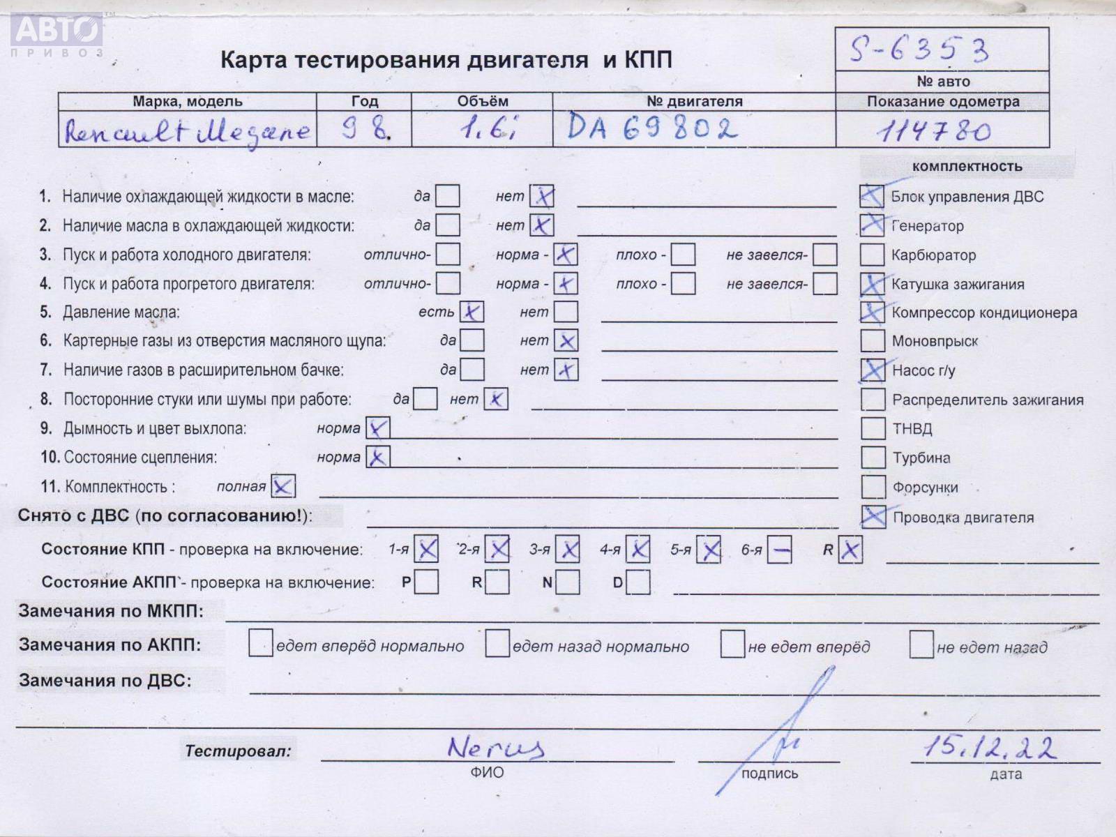 | Марка / Модель / Год: | Renault Megane I (1995-2003) 1998 |