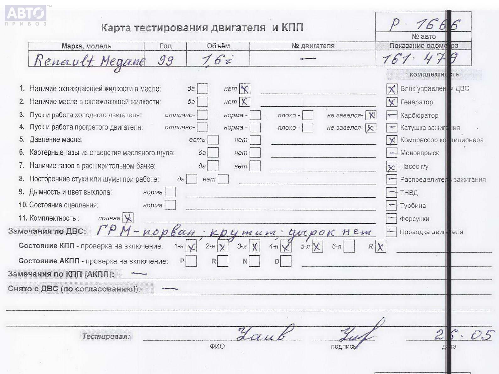 | Автомобиль / VIN: | P1666 VF1DA040521641524 |
