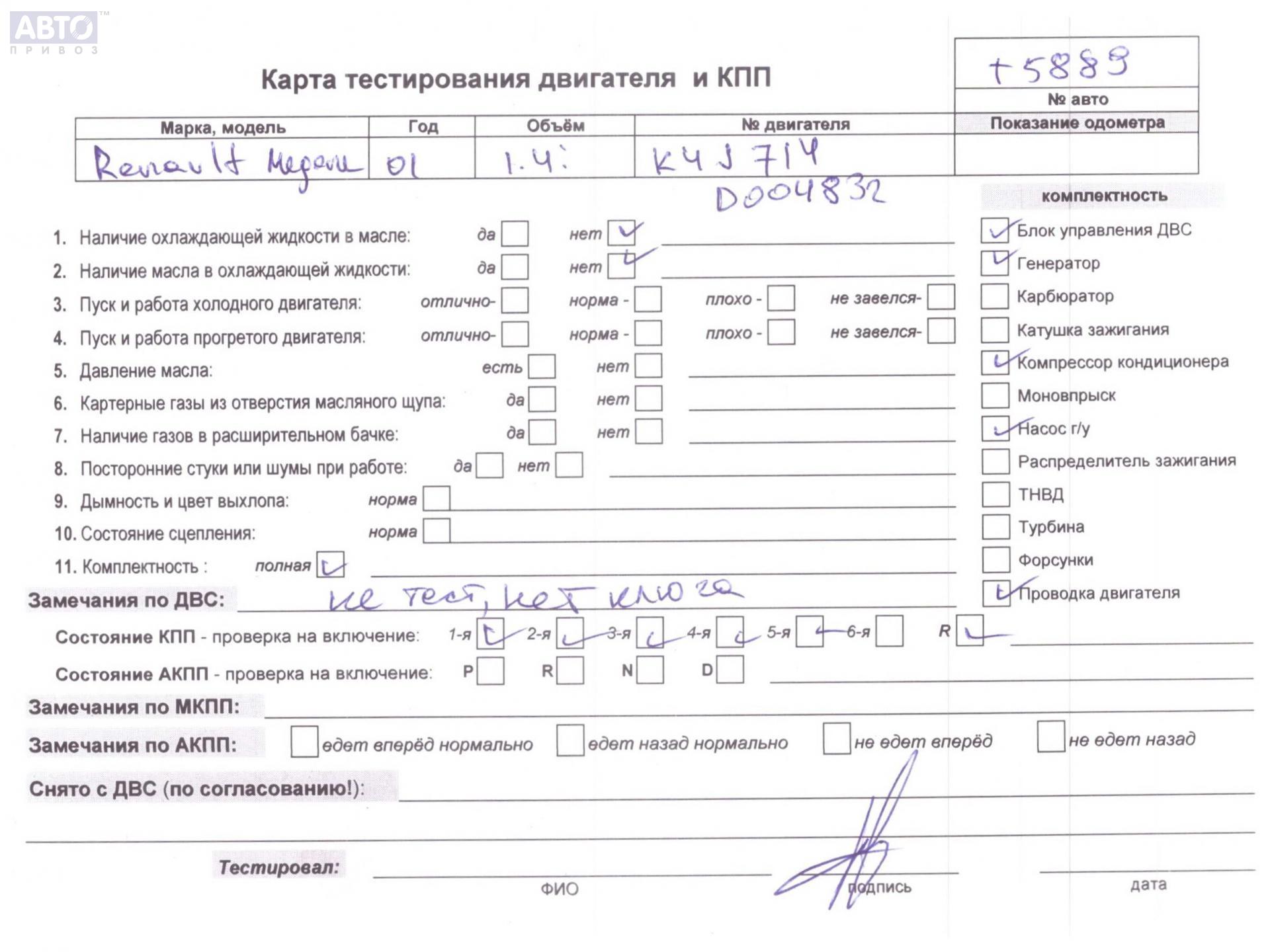 | Марка / Модель / Год: | Renault Megane I (1995-2003) 2001 |