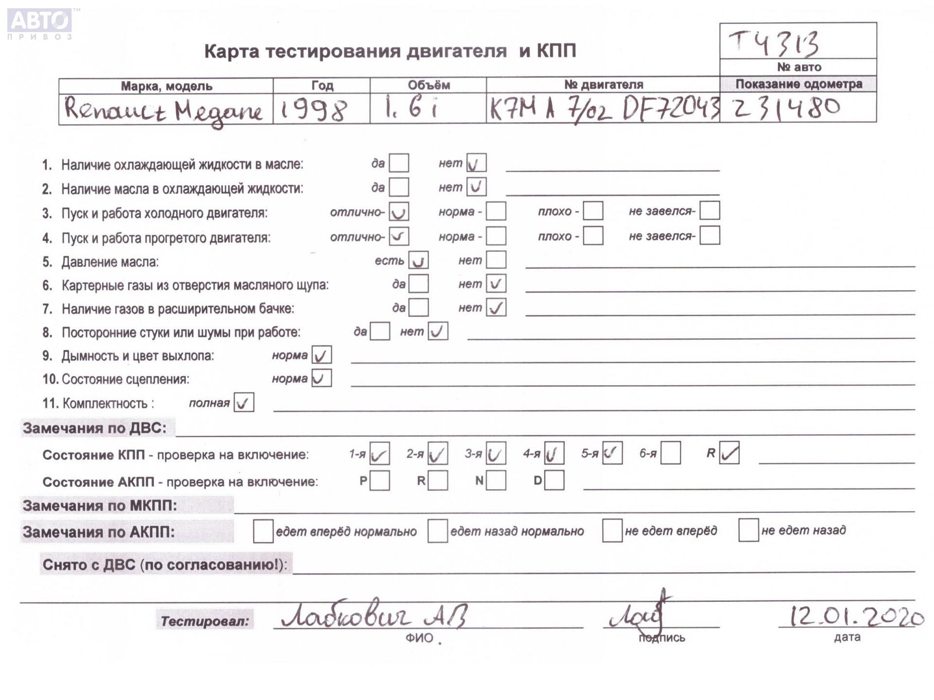 | Автомобиль / VIN: | T4313 VF1DA0F0G18170492 |