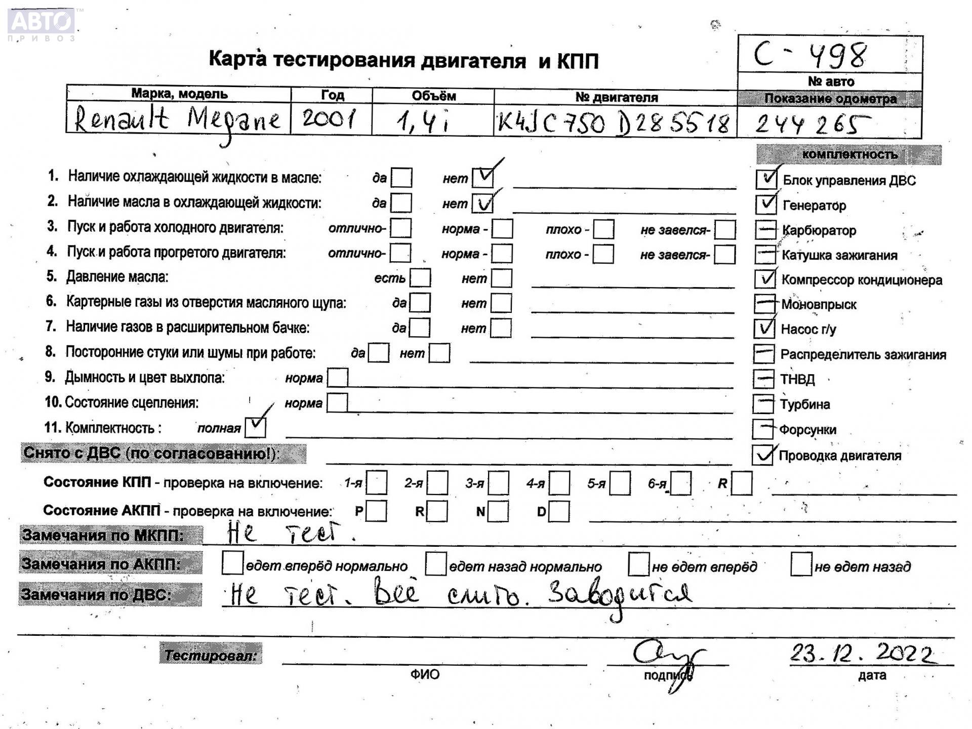 | Марка / Модель / Год: | Renault Megane I (1995-2003) 2001 |