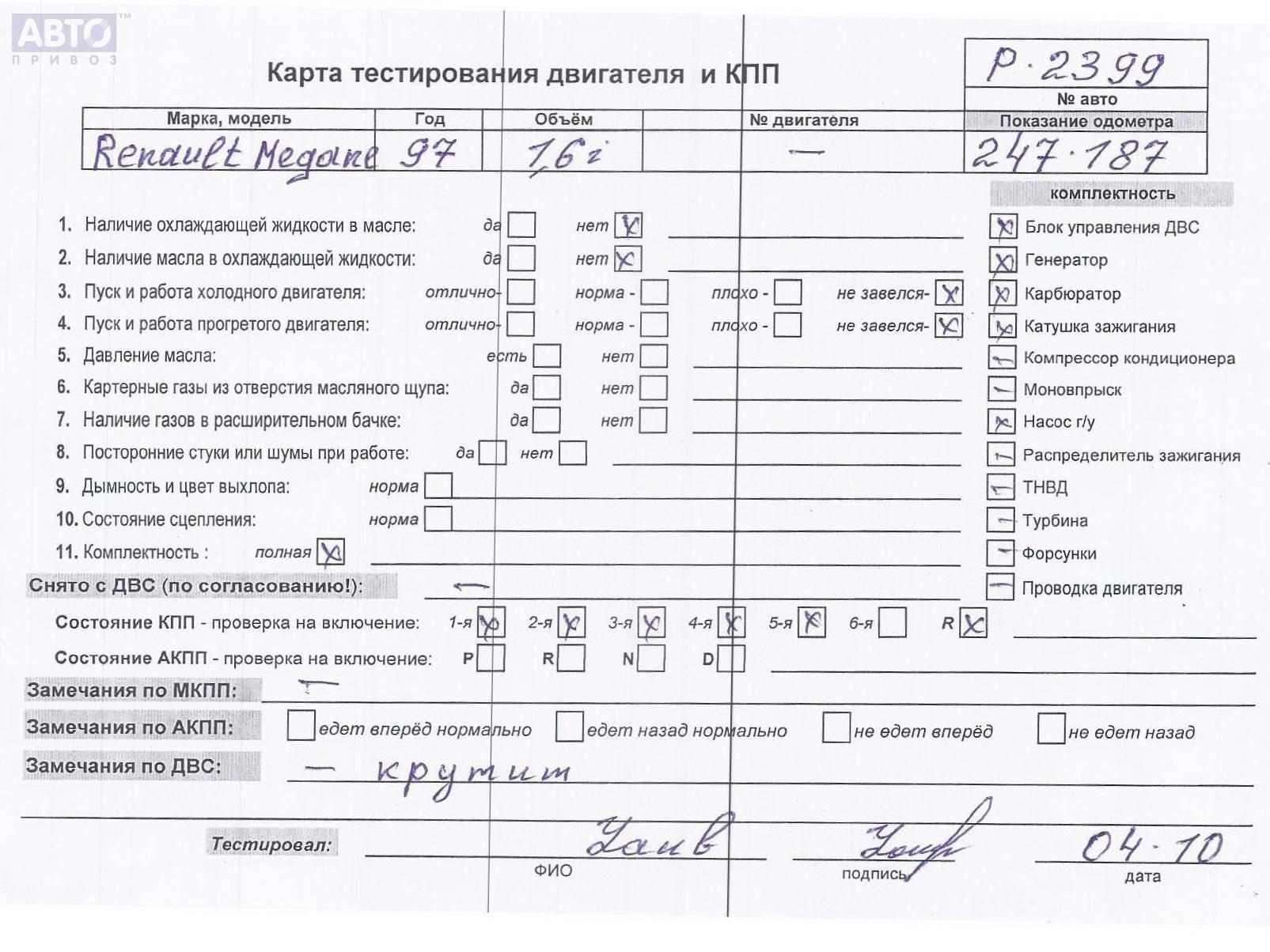 | Марка / Модель / Год: | Renault Megane I (1995-2003) 1997 |