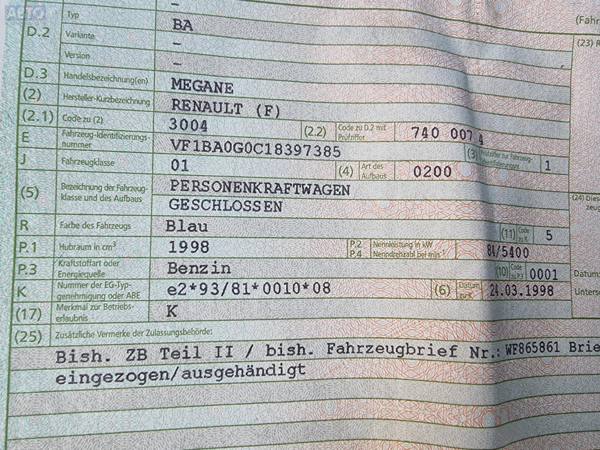 | Марка / Модель / Год: | Renault Megane I (1995-2003) 1998 |
