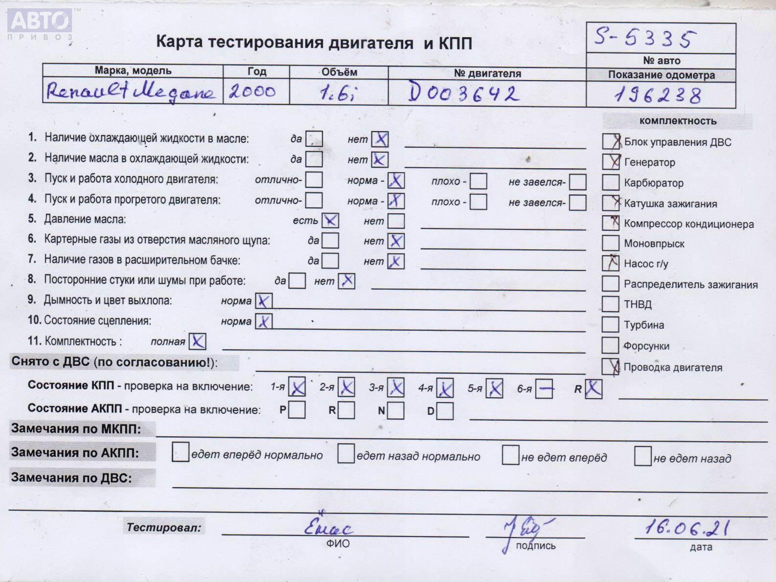| Марка / Модель / Год: | Renault Megane I (1995-2003) 2001 |