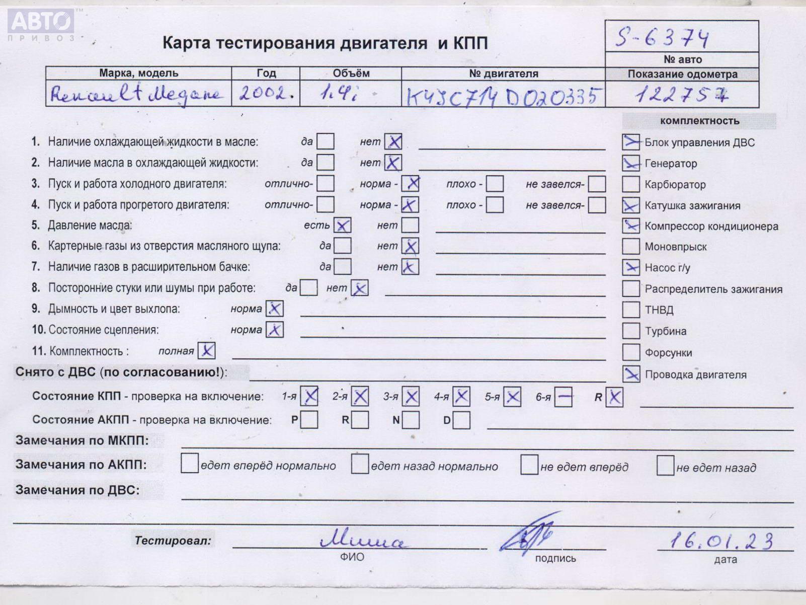 | Марка / Модель / Год: | Renault Megane I (1995-2003) 2002 |