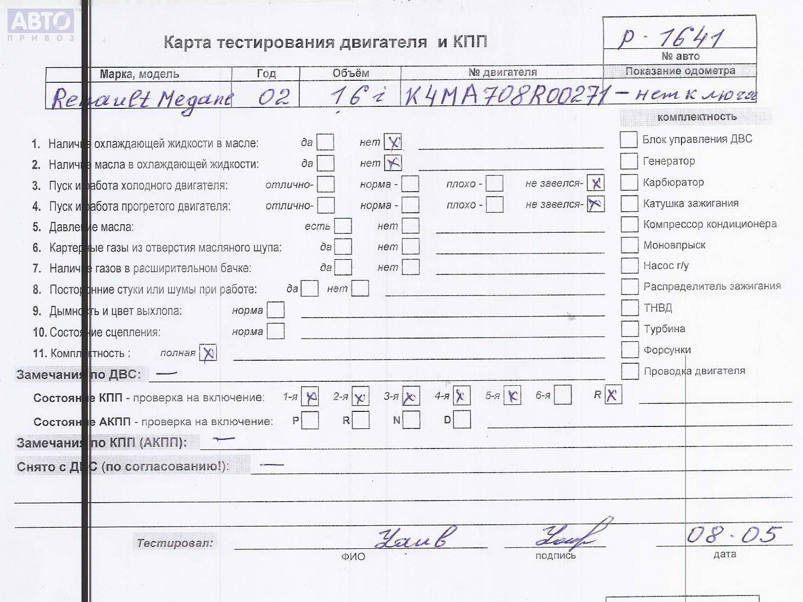 | Марка / Модель / Год: | Renault Megane I (1995-2003) 2002 |
