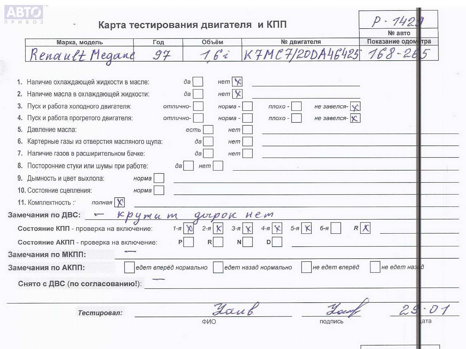 | Автомобиль / VIN: | P1429 VF1LA0L0F16035212 |
