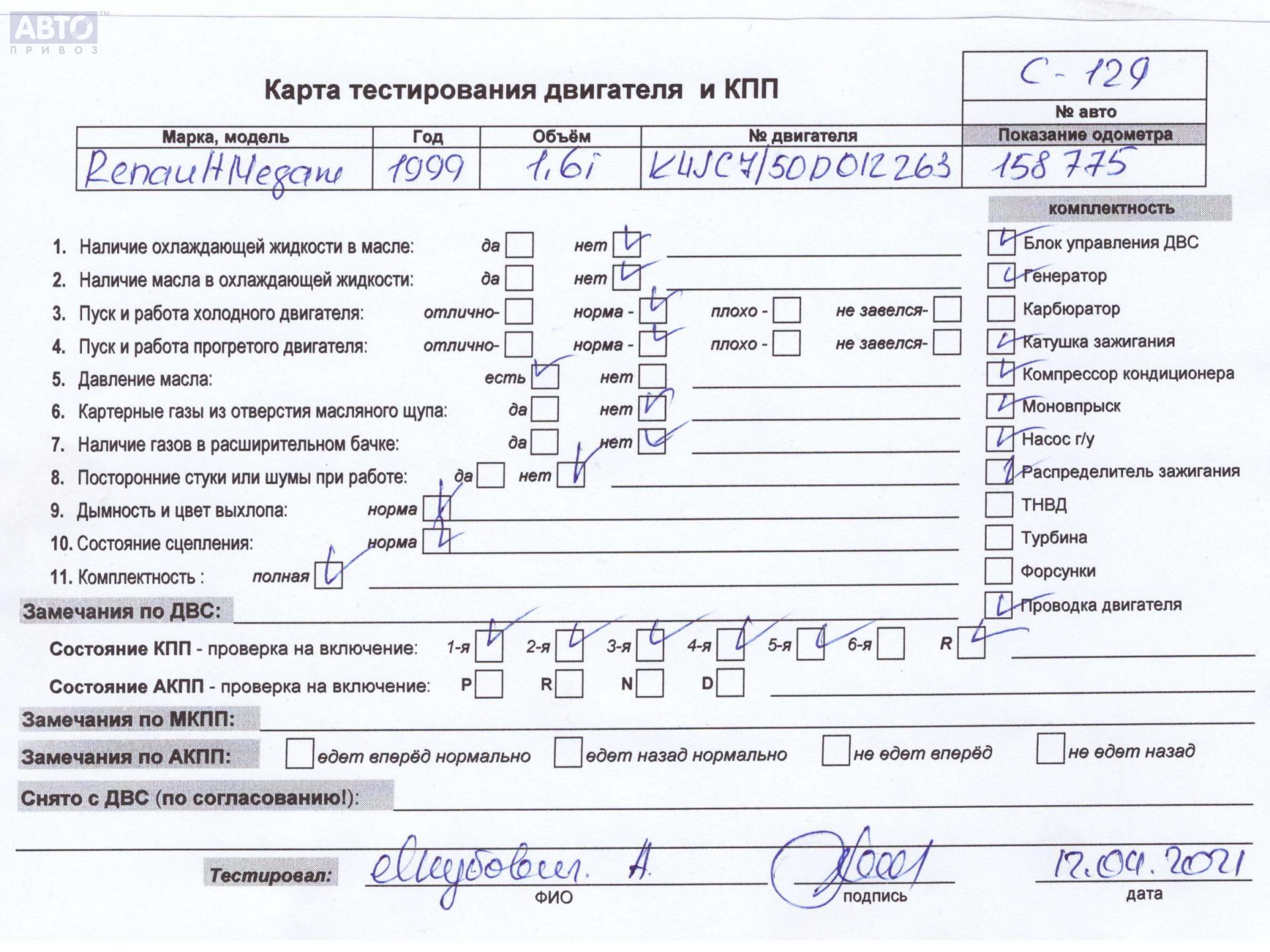 | Автомобиль / VIN: | C0129 VF1BA0W0519844025 |
