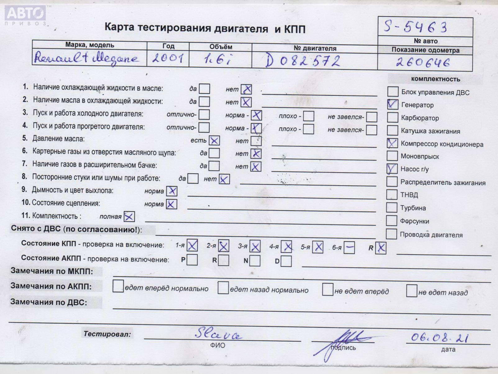 | Марка / Модель / Год: | Renault Megane I (1995-2003) 2001 |