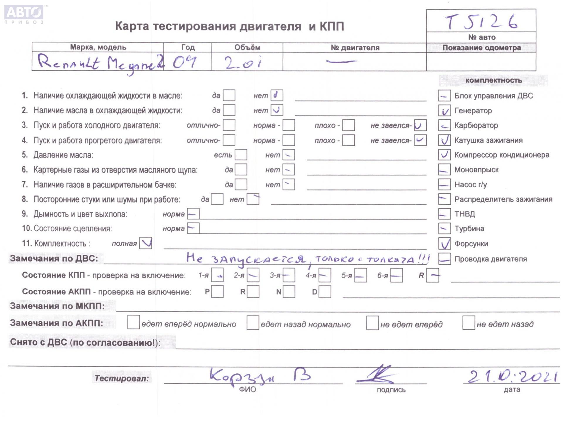 | Автомобиль / VIN: | T5126 VF1EM0U0632031203 |