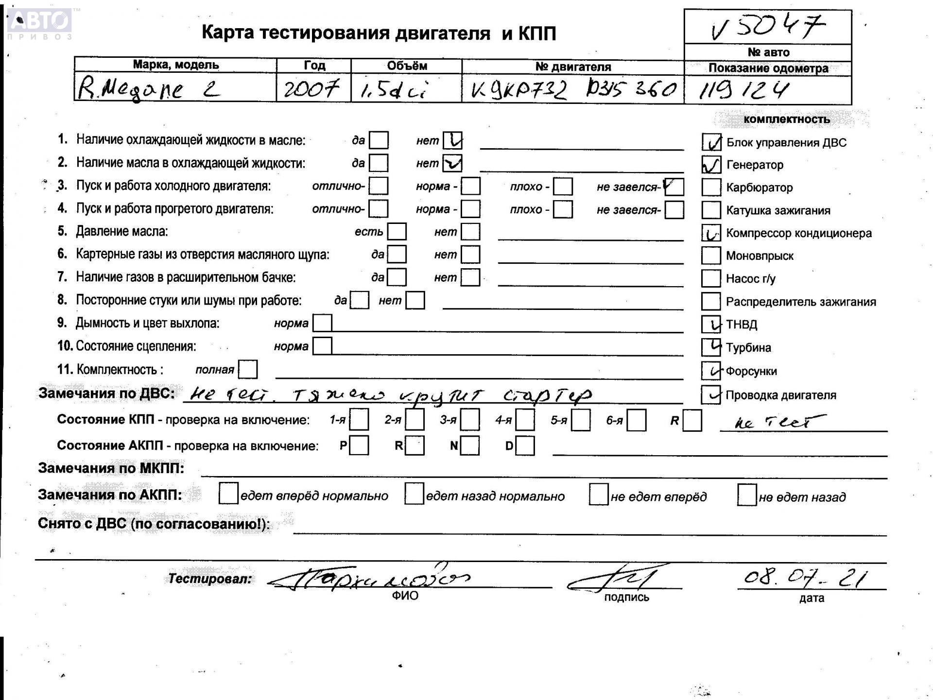 | Автомобиль / VIN: | V5047 VF1KMSEC637887997 |