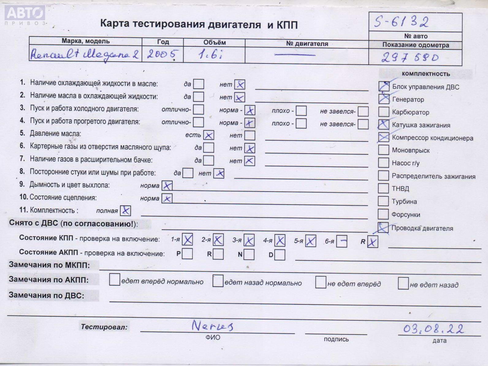 | Марка / Модель / Год: | Renault Megane II (2002-2008) 2005 |