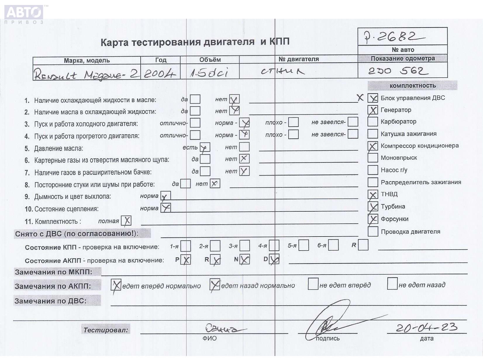 | Марка / Модель / Год: | Renault Megane II (2002-2008) 2004 |
