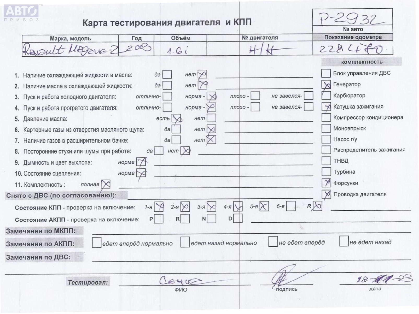 | Марка / Модель / Год: | Renault Megane II (2002-2008) 2003 |