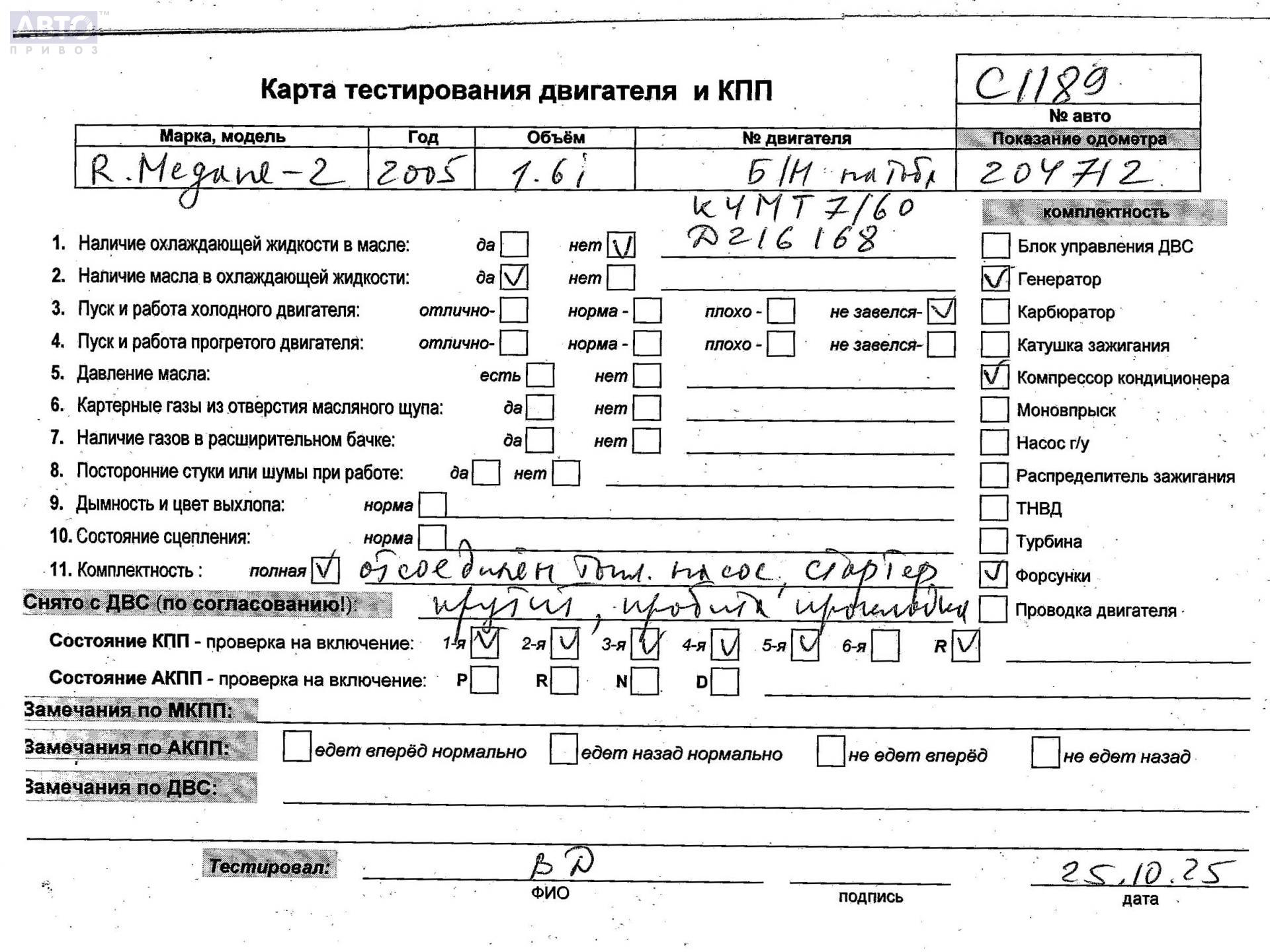 | Автомобиль / VIN: | C1189 VF1KM0J0H34316912 |