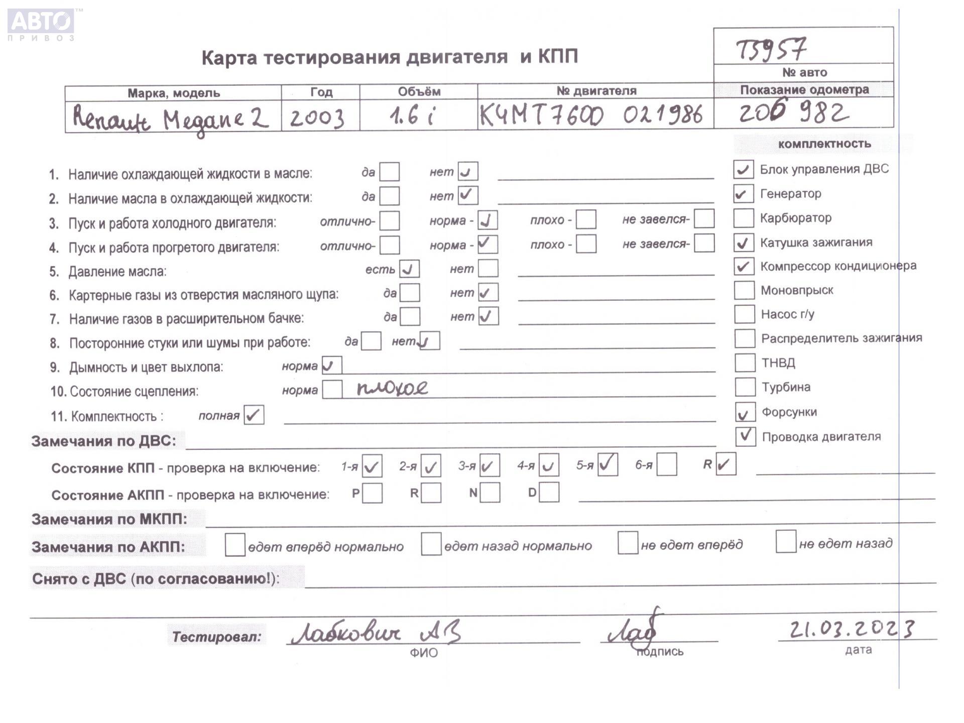 | Марка / Модель / Год: | Renault Megane II (2002-2008) 2003 |