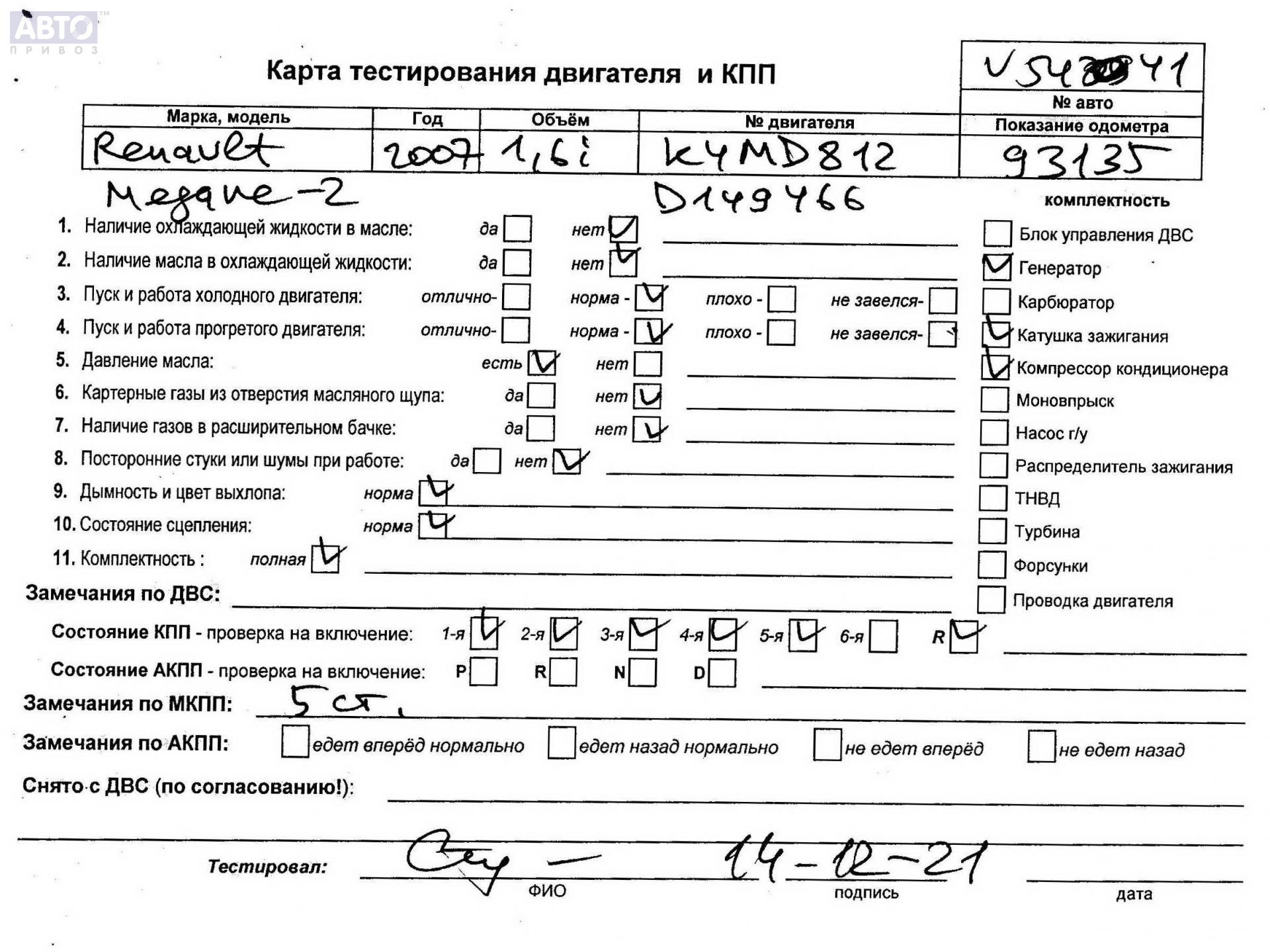 | Марка / Модель / Год: | Renault Megane II (2002-2008) 2007 |