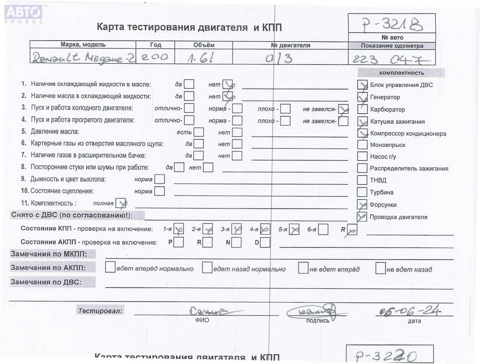 | Автомобиль / VIN: | P3218 VF1BM0C0H32576870 |