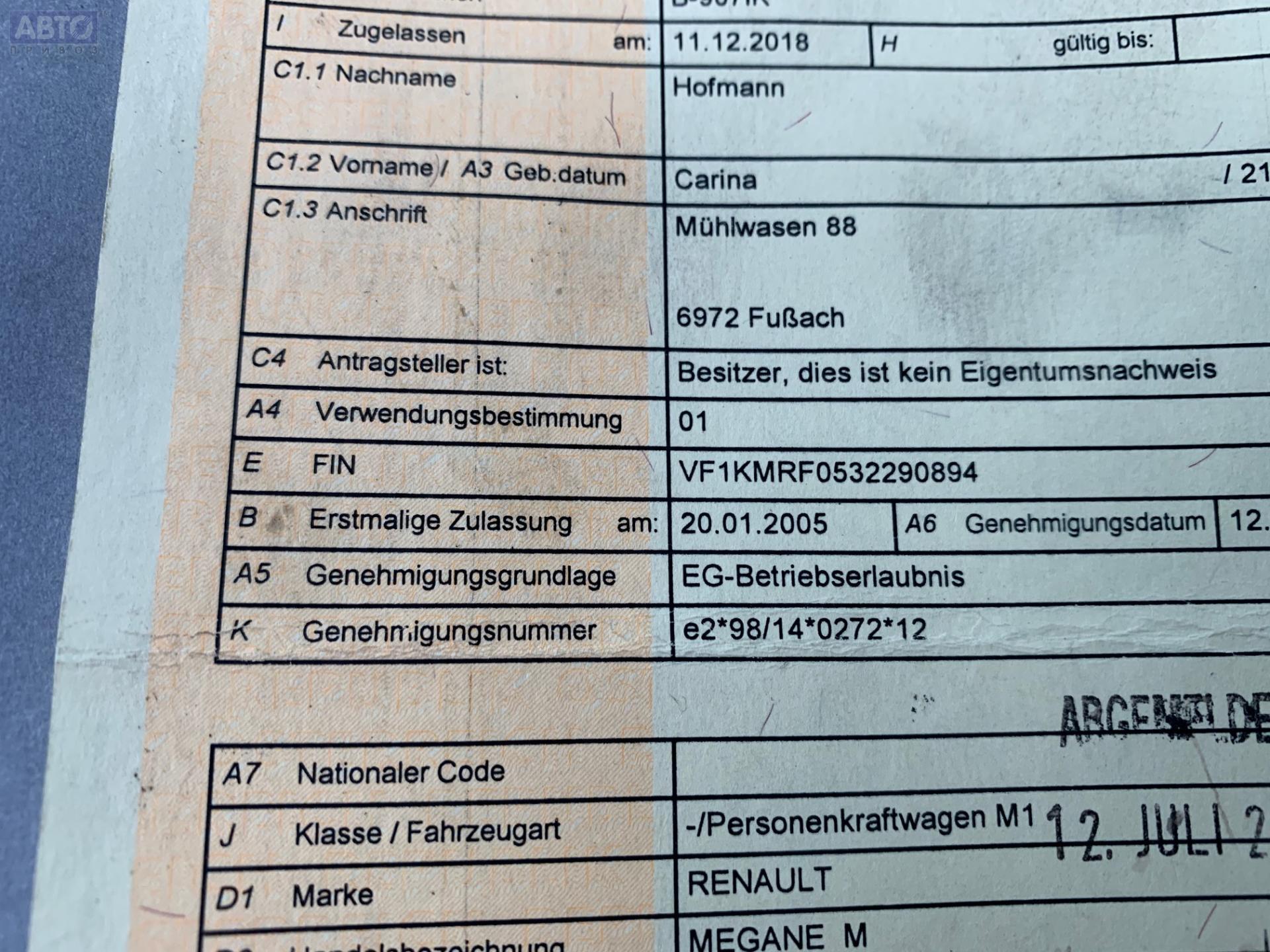 | Марка / Модель / Год: | Renault Megane II (2002-2008) 2004 |
