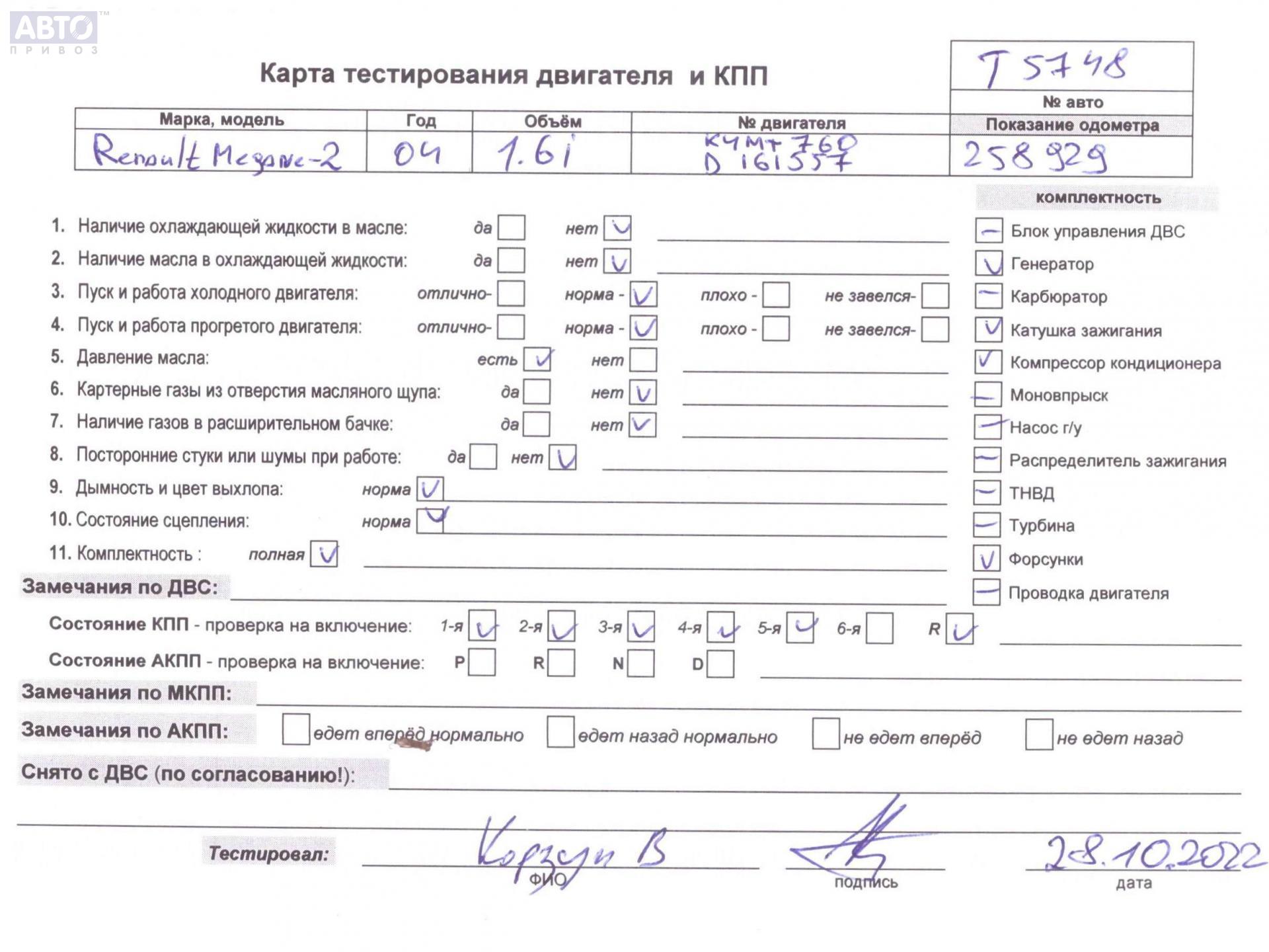 | Марка / Модель / Год: | Renault Megane II (2002-2008) 2004 |