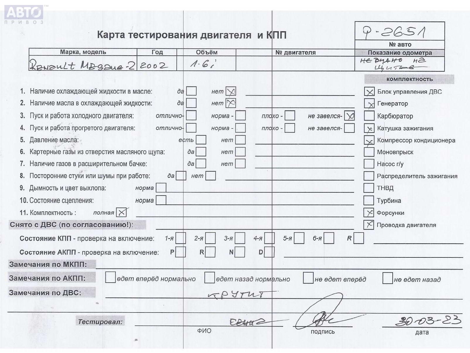 | Автомобиль / VIN: | P2651 VF1BM0C0H32456952 |