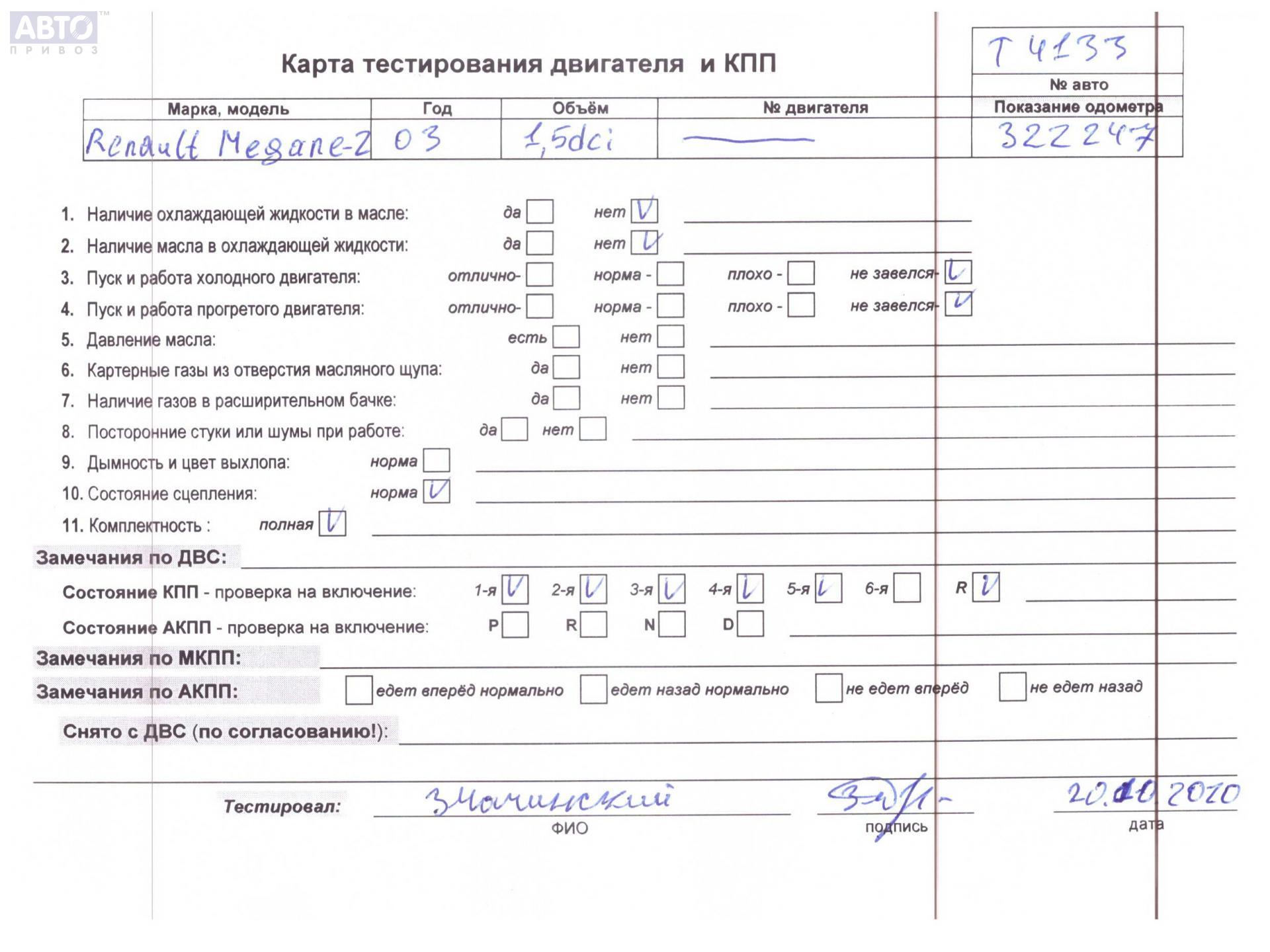 | Марка / Модель / Год: | Renault Megane II (2002-2008) 2003 |