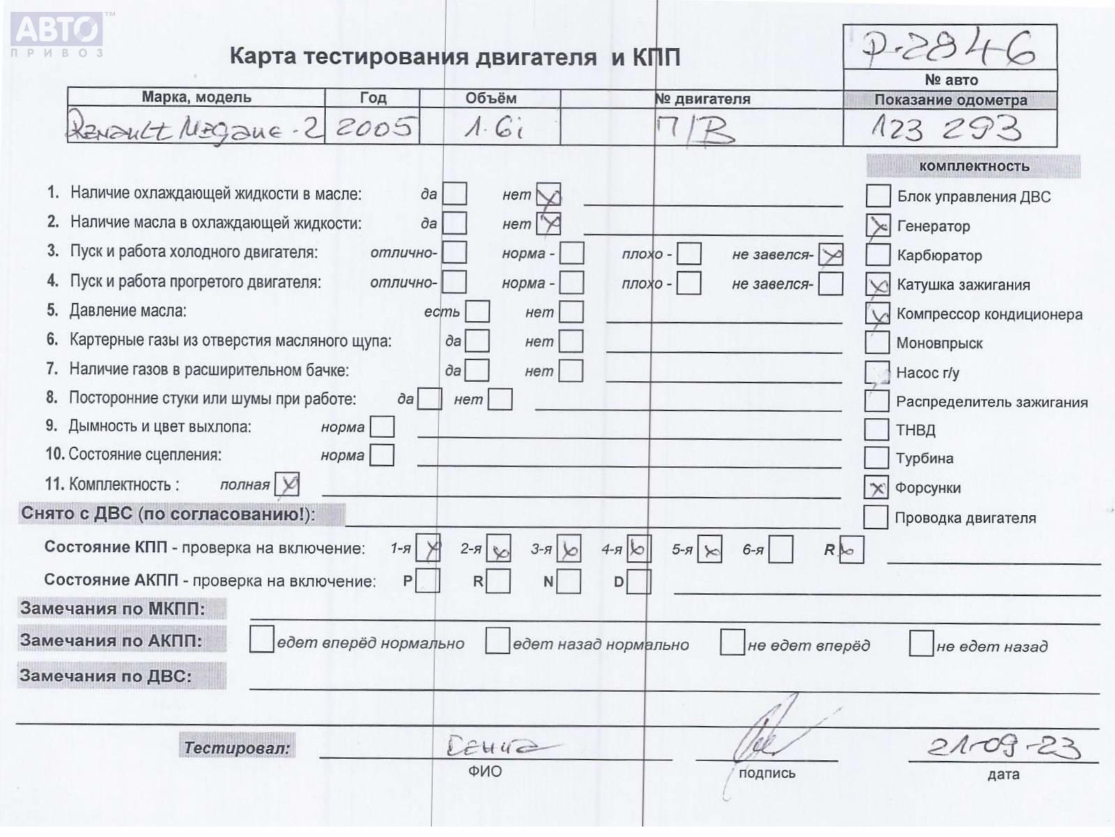 | Марка / Модель / Год: | Renault Megane II (2002-2008) 2005 |