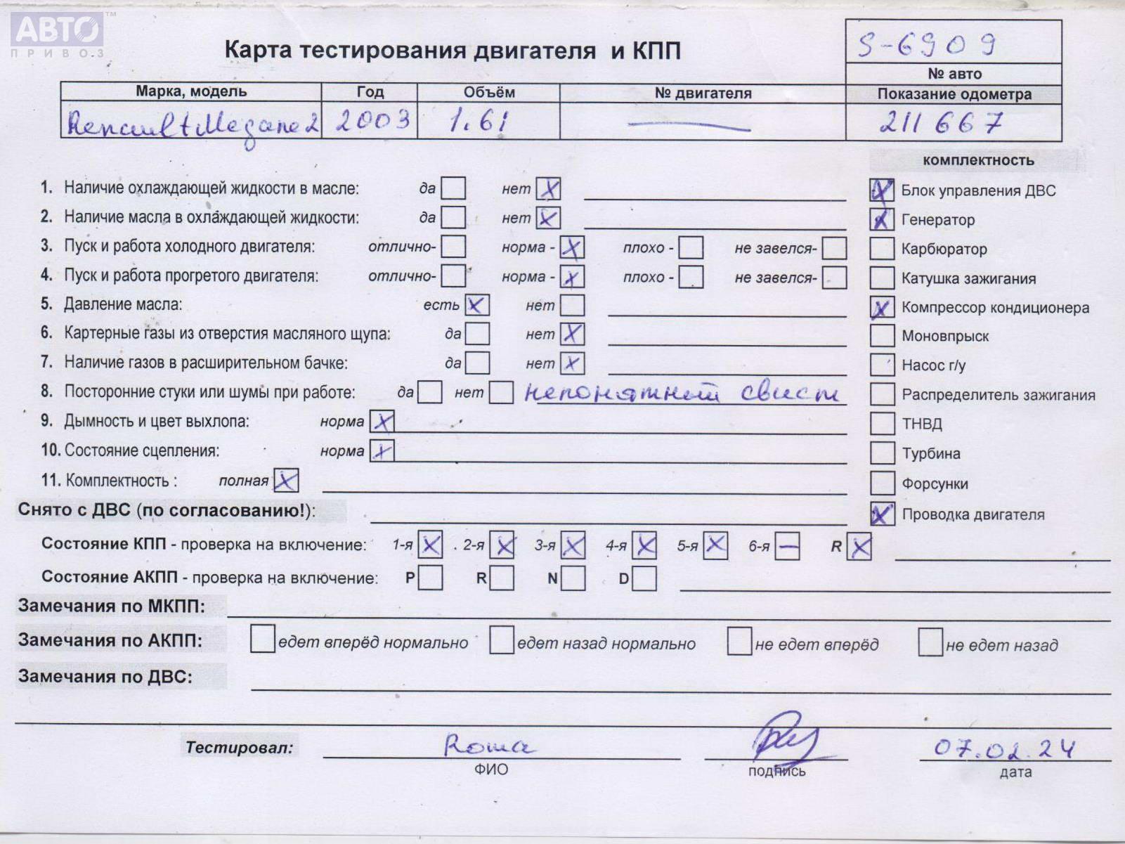 | Автомобиль / VIN: | S6909 VF1KM0J0H29442064 |