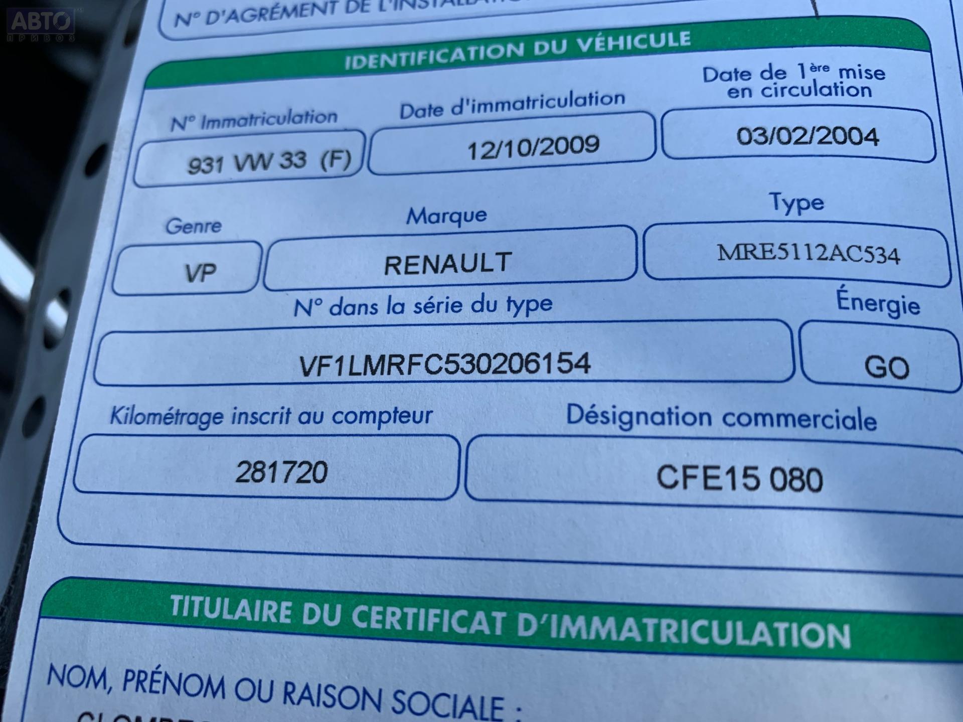 | Автомобиль / VIN: | T2656 VF1LMRFC530206154 |