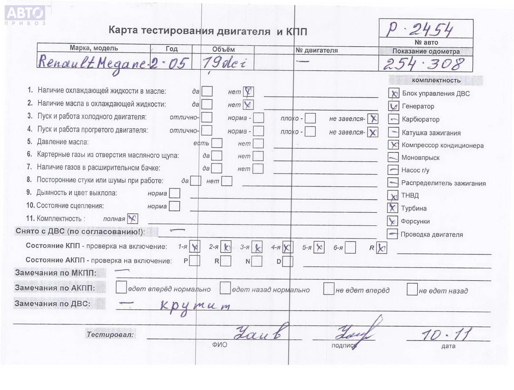 | Автомобиль / VIN: | P2454 VF1KMS40634752620 |
