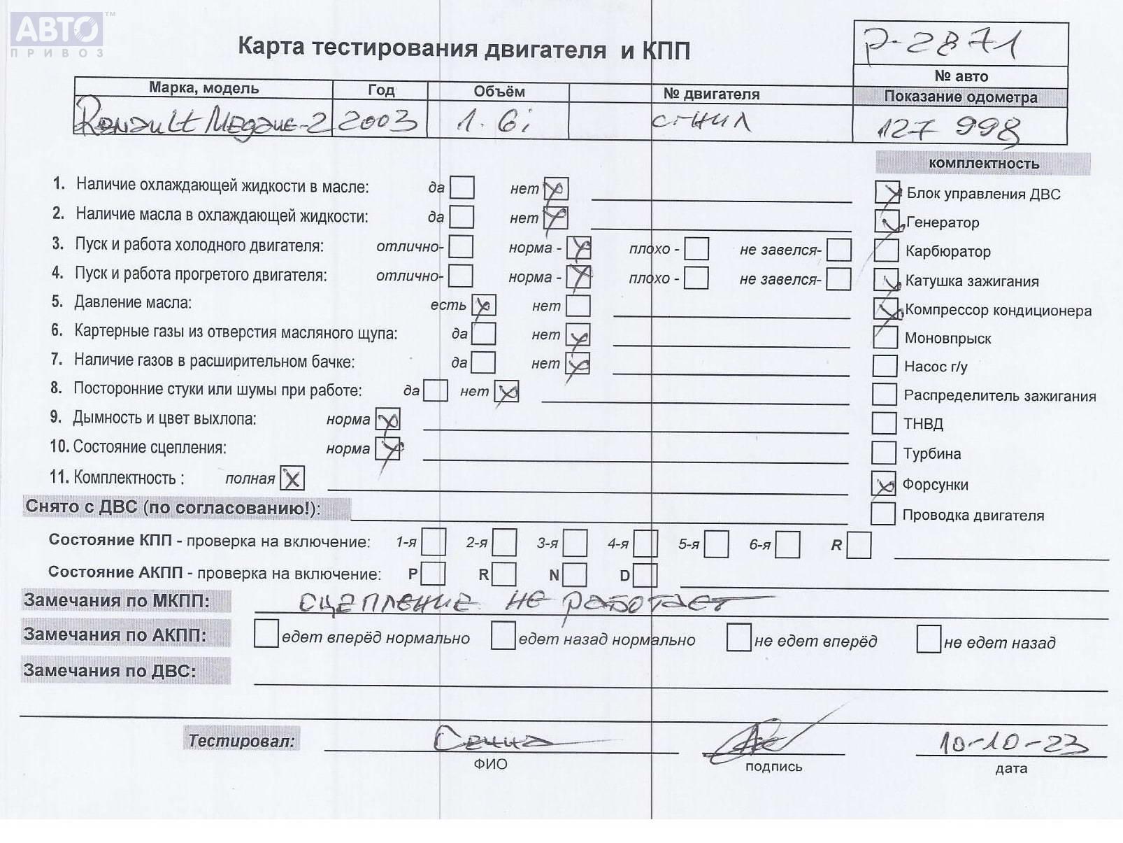 | Автомобиль / VIN: | P2871 VF1KM0J0H29442152 |