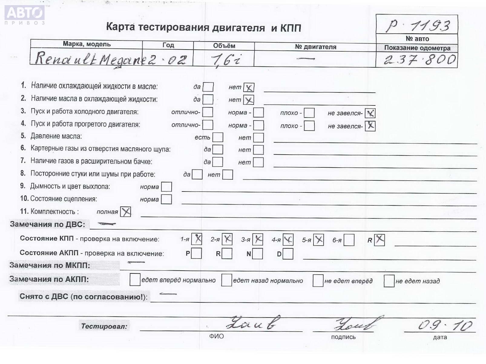 | Автомобиль / VIN: | P1193 VF1BM0J0H27630302 |
