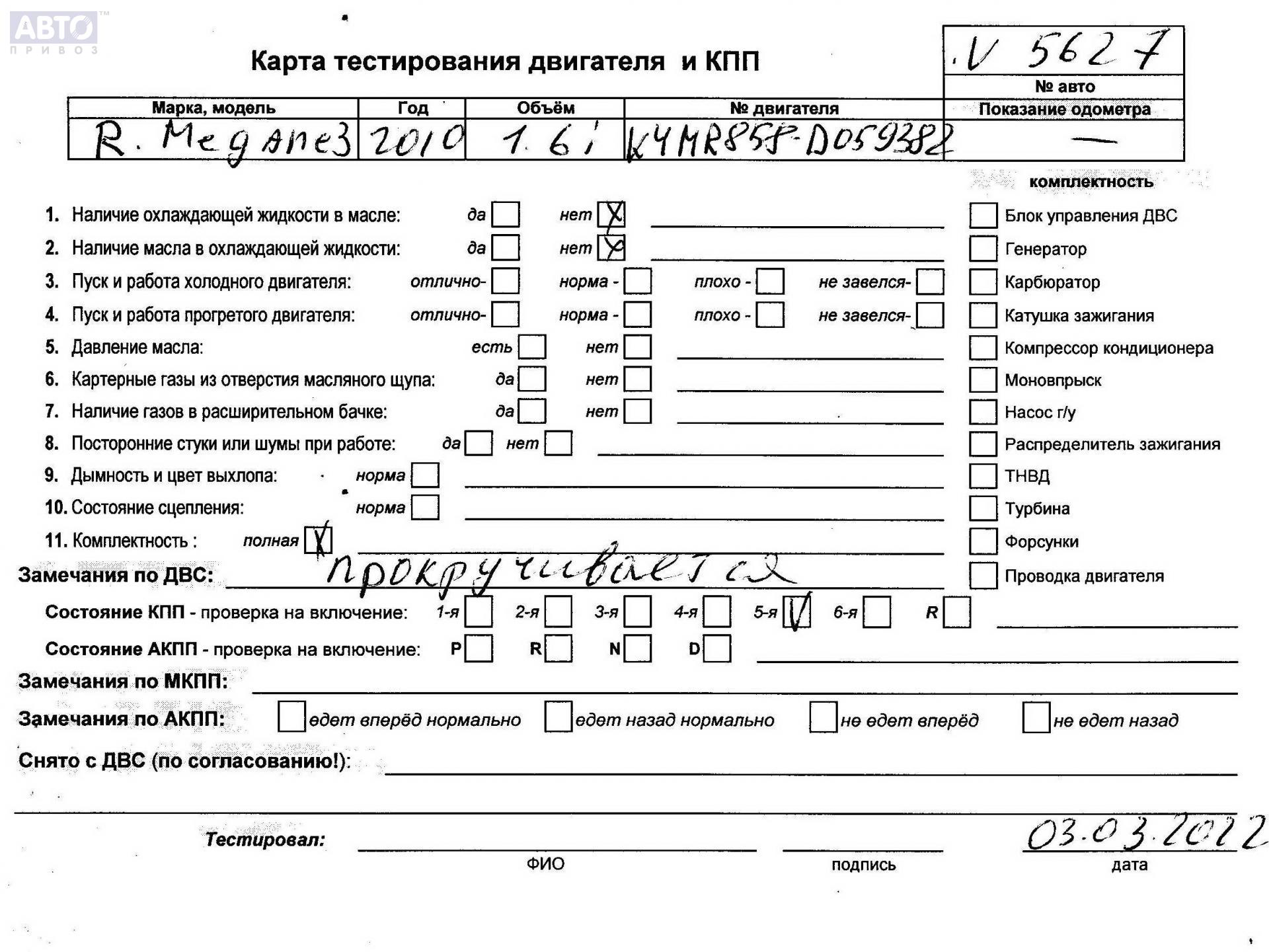 | Марка / Модель / Год: | Renault Megane III (2008-2016) 2010 |