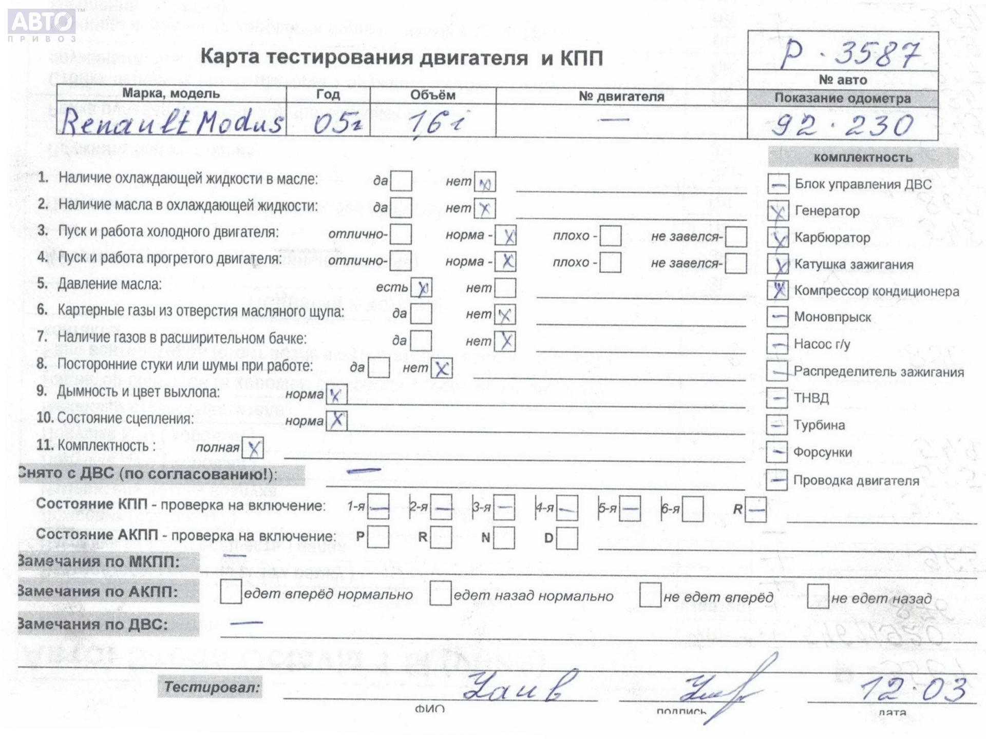 | Марка / Модель / Год: | Renault Modus 2005 |