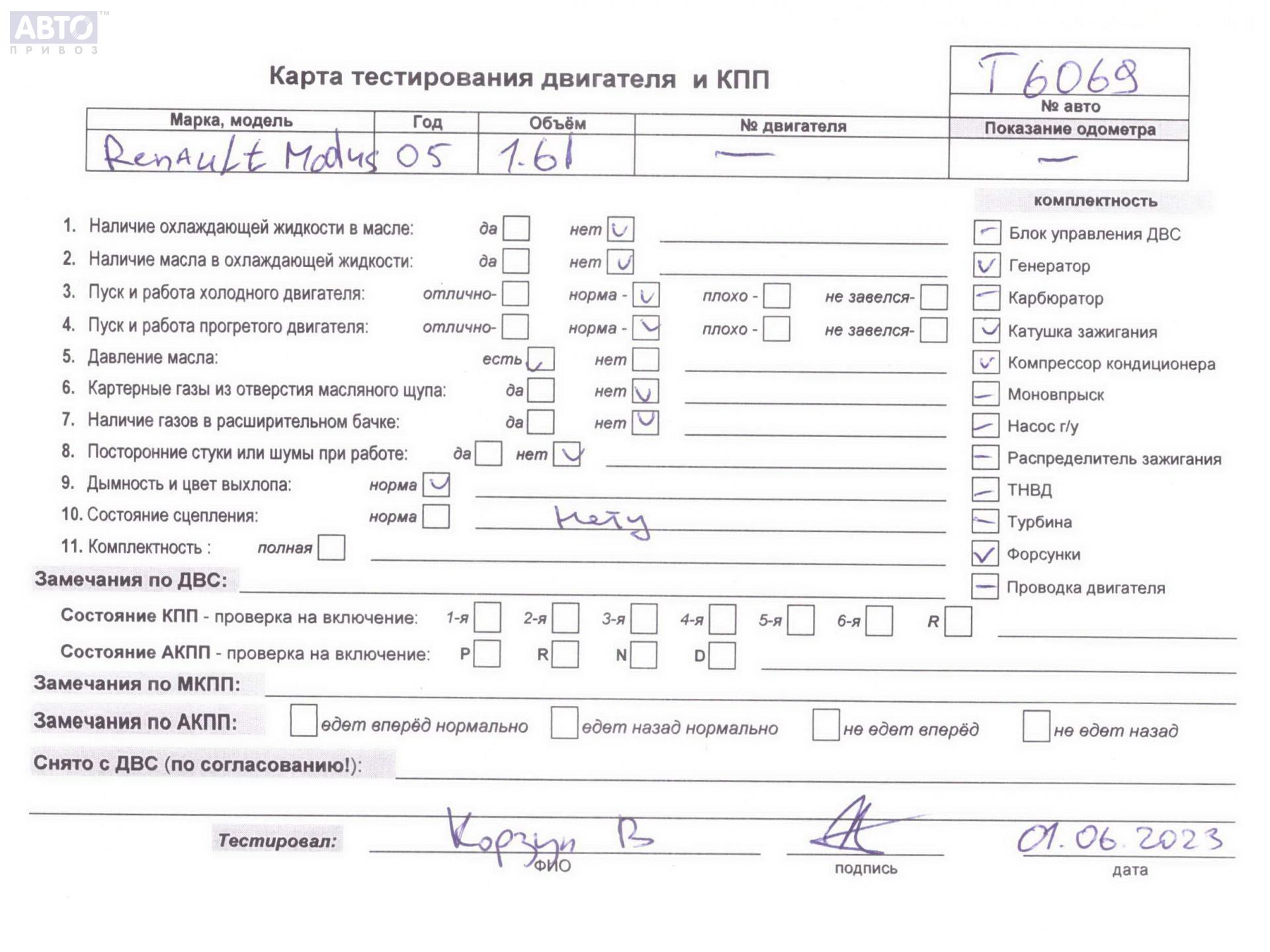 | Марка / Модель / Год: | Renault Modus 2005 |