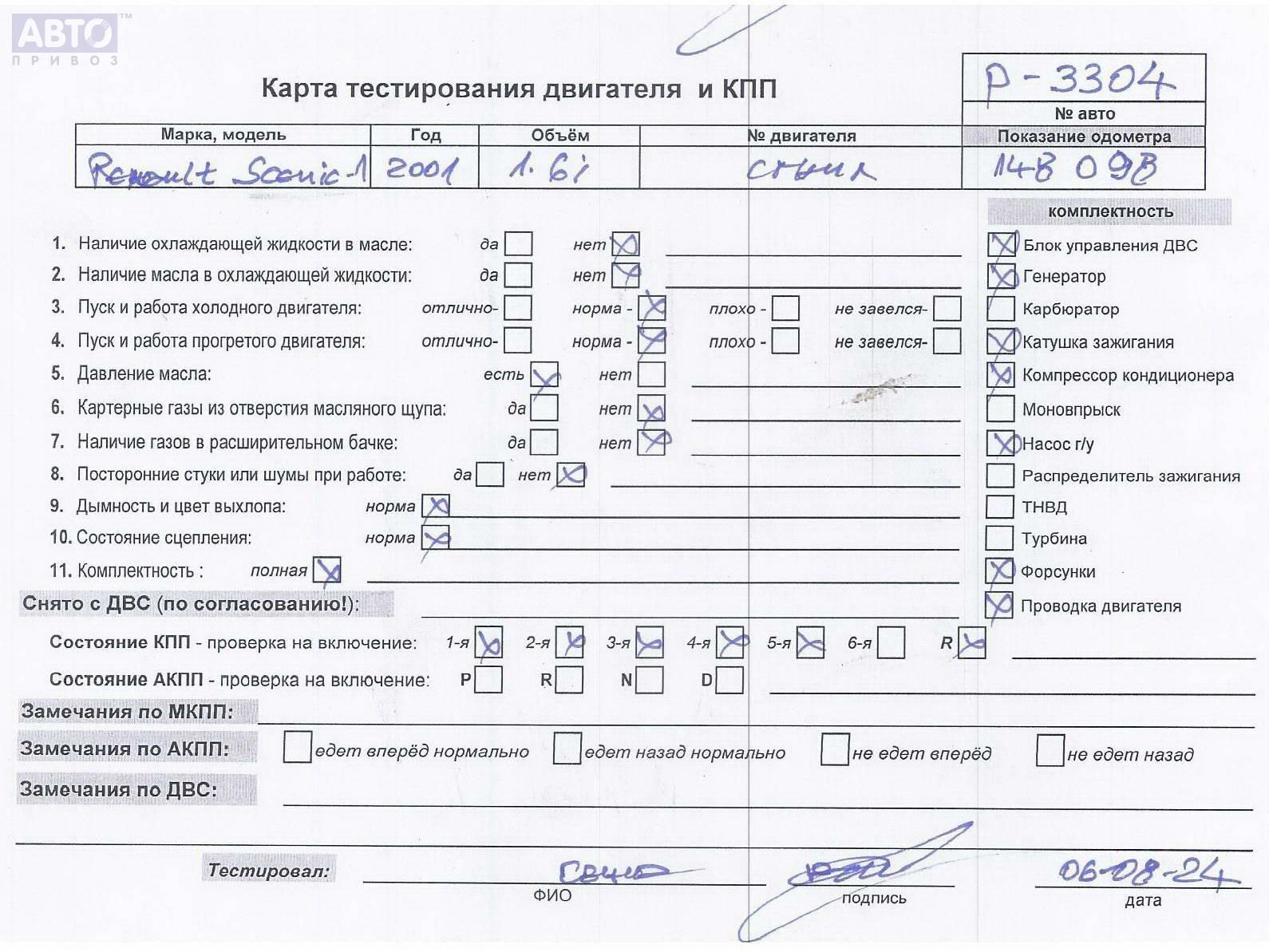 | Автомобиль / VIN: | P3304 VF1JA1J0524676987 |