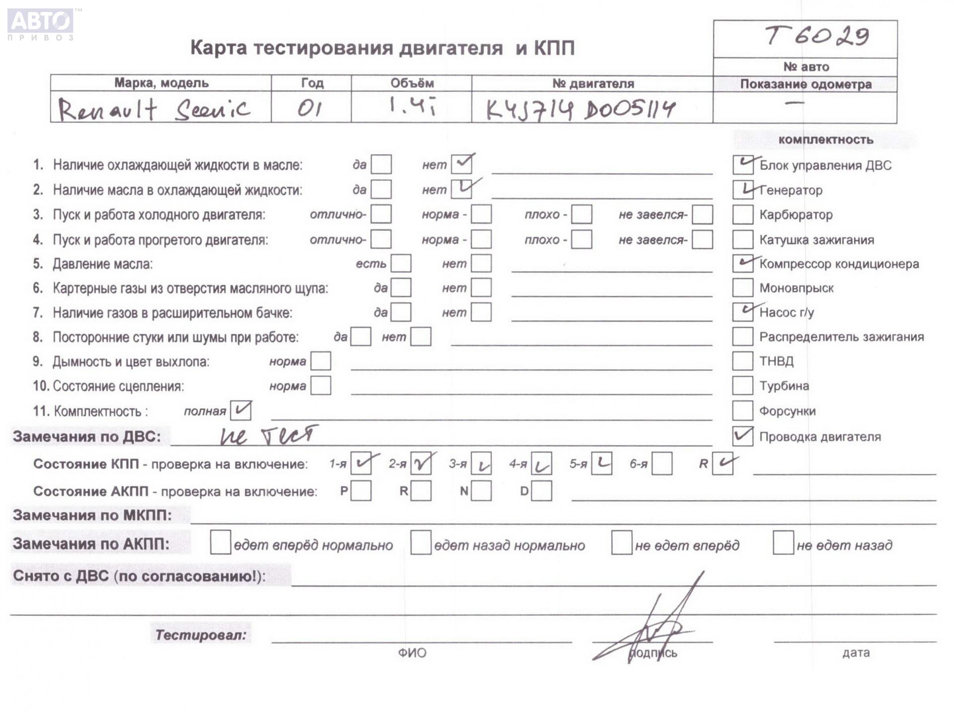 | Марка / Модель / Год: | Renault Scenic I (1996-2003) 2001 |
