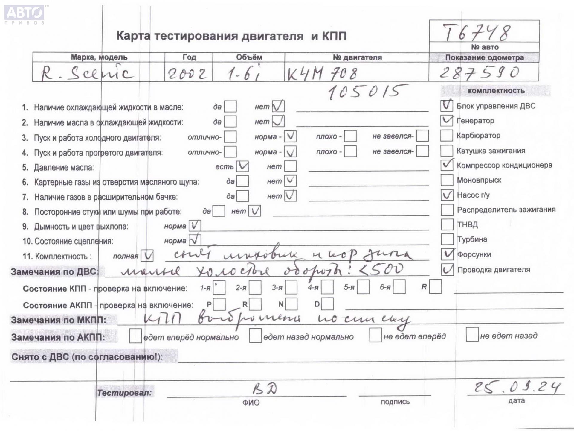 | Автомобиль / VIN: | T6748 VF1JA1J0527881468 |